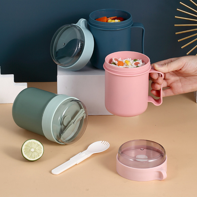 Суповая банка была изготовлена из полипропиленового материала с маленькой ложкой, этот пищевой контейнер будет идти в ногу с любым путешествием.