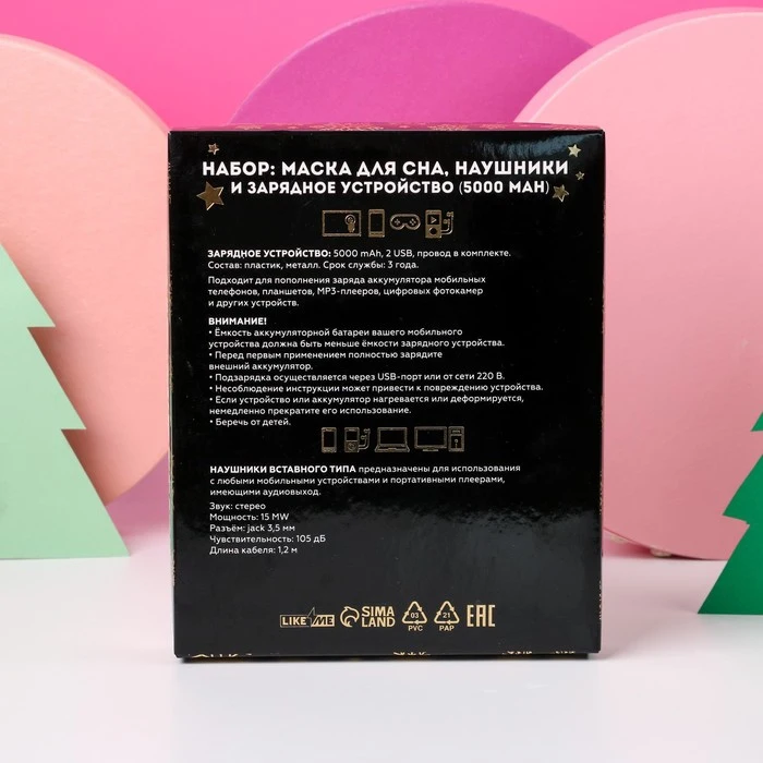| Составляющие подарочного набора | Маска,Наушники,Внешний аккумулятор (PowerBank) |