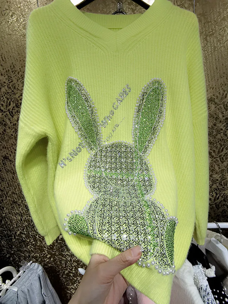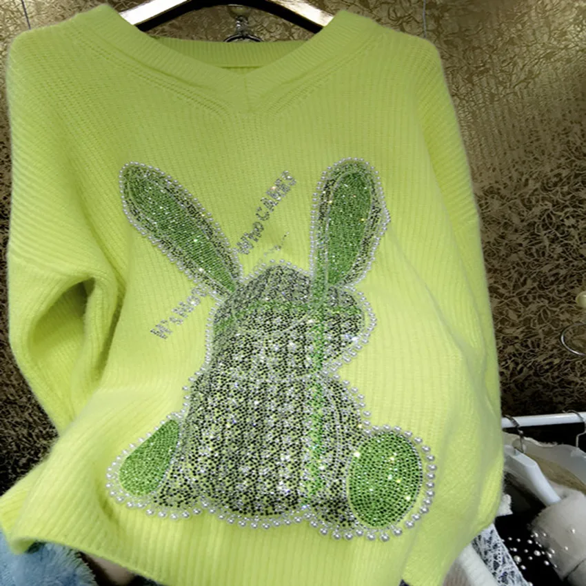 Женские свитера кардиган на осень 2022 Стразы с V-образным вырезом свитер большим