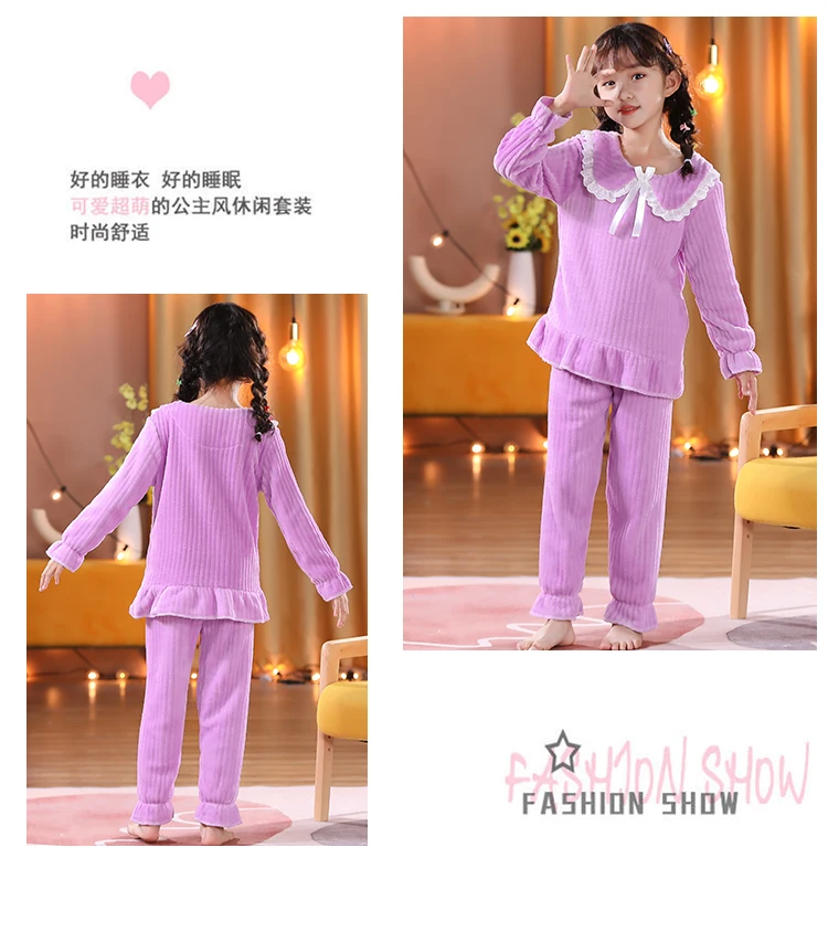 Пижамный комплект для девочек зимние детские пижамы фланелевая одежда сна