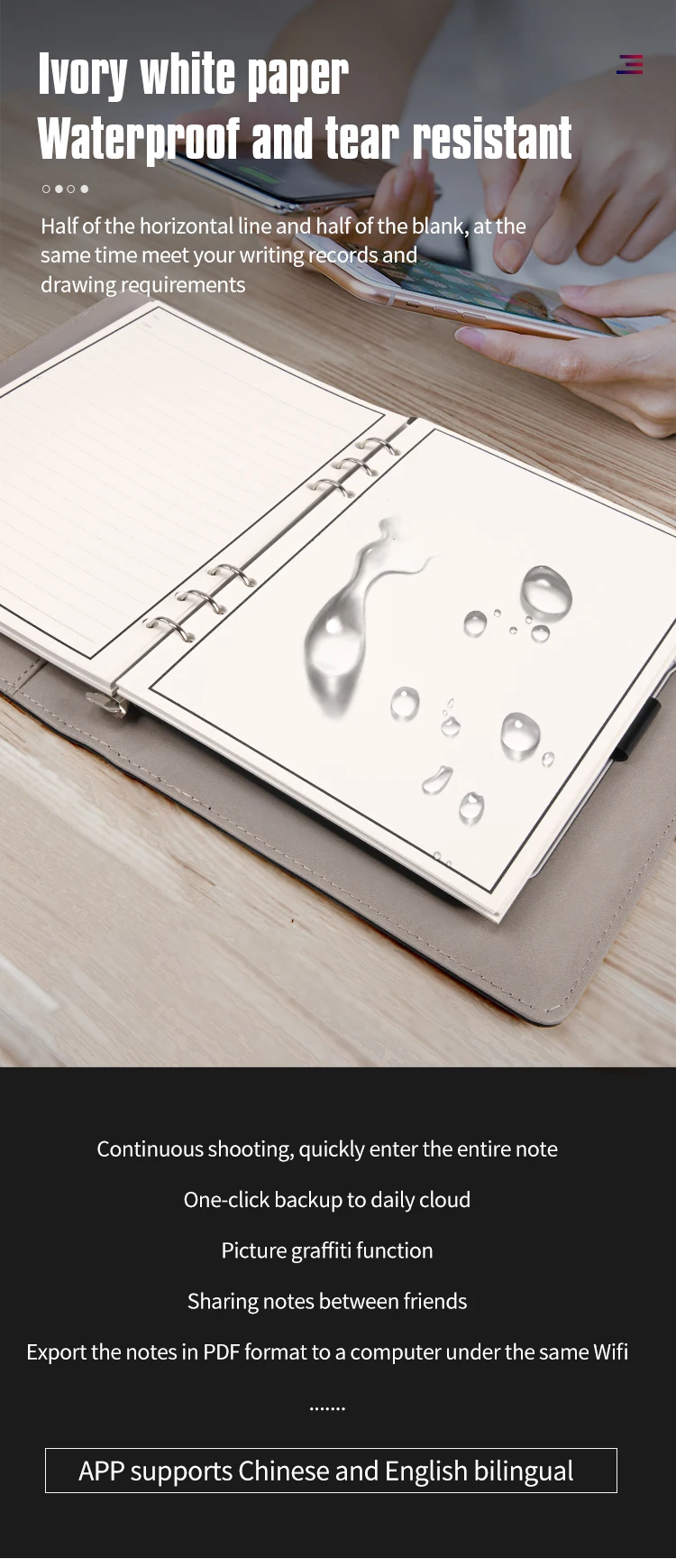 Уникальная быстрая зарядка, зарядное устройство, записная книжка, синяя синхронизация зуба, цифровое Облачное хранилище, многофункциональная ручка для стирания, блокнот