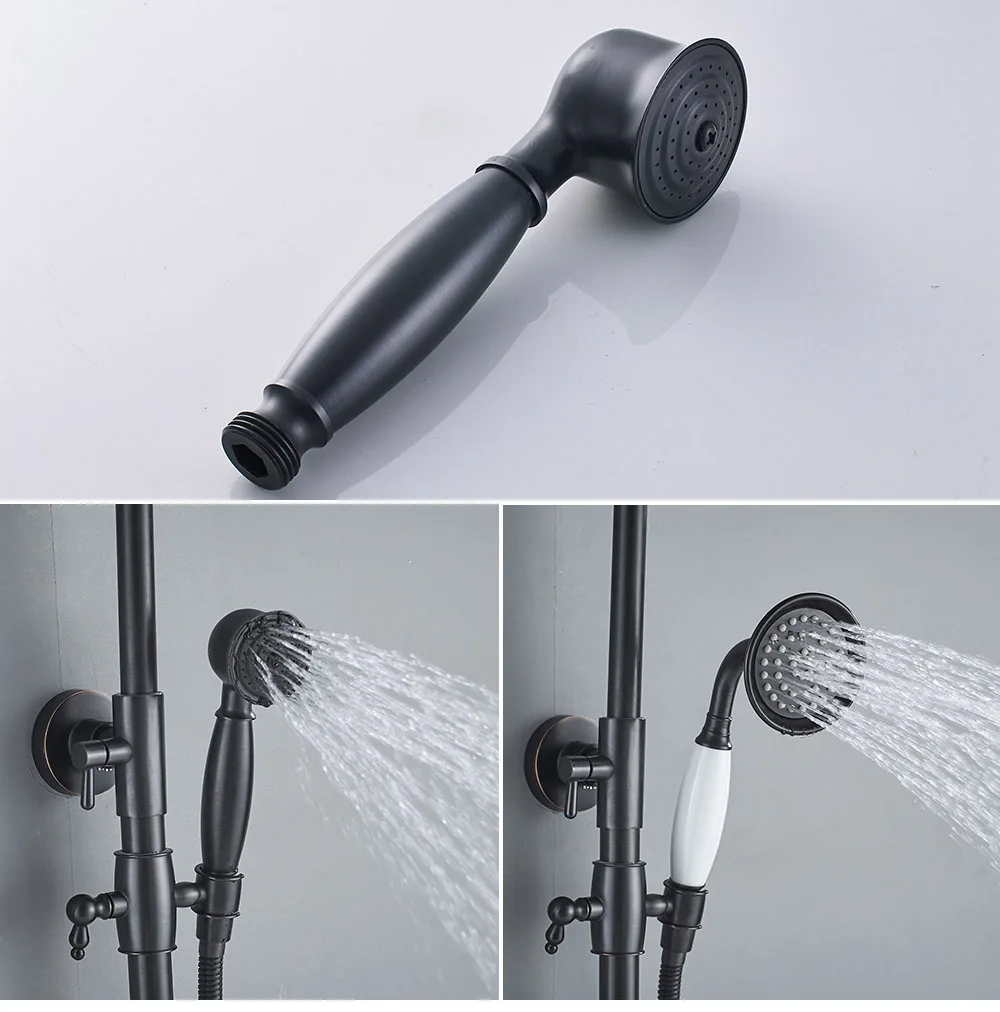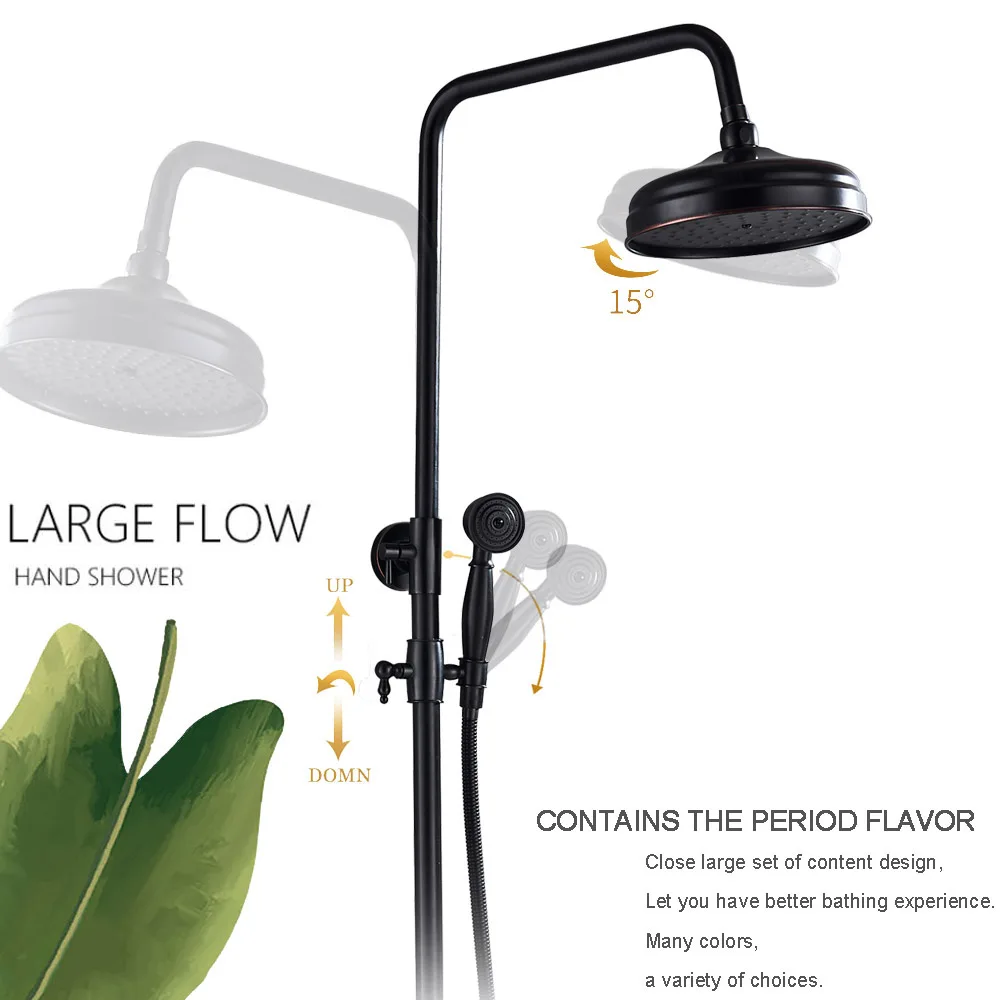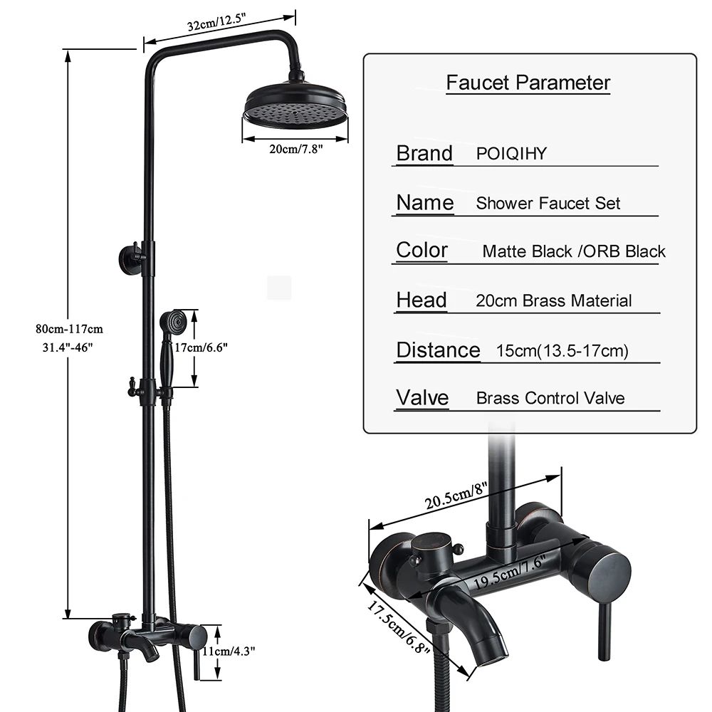 POIQIHY ORB черный душевой кран в стену 8 "душ из латуни с дождевой насадкой смеситель для ванной носик набор для душа с двумя ручками