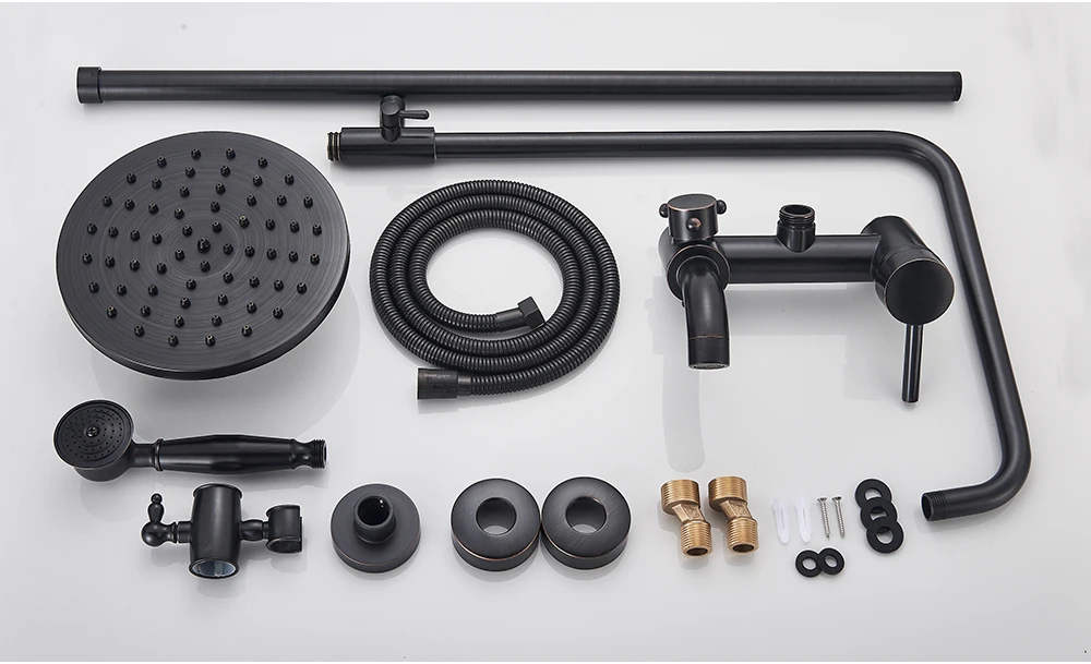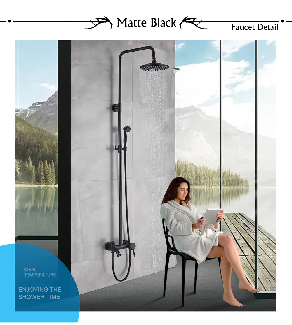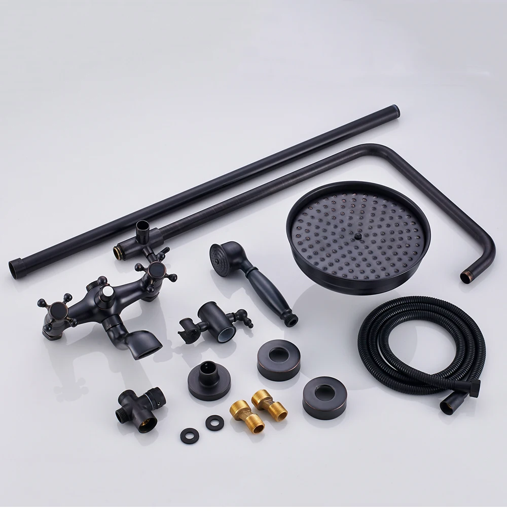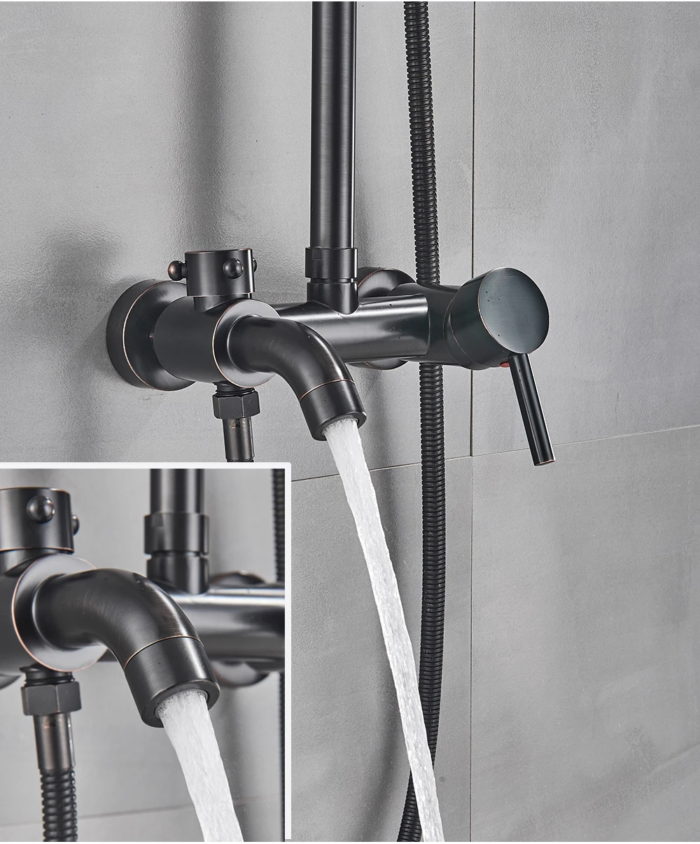 POIQIHY ORB черный душевой кран в стену 8 "душ из латуни с дождевой насадкой смеситель для ванной носик набор для душа с двумя ручками