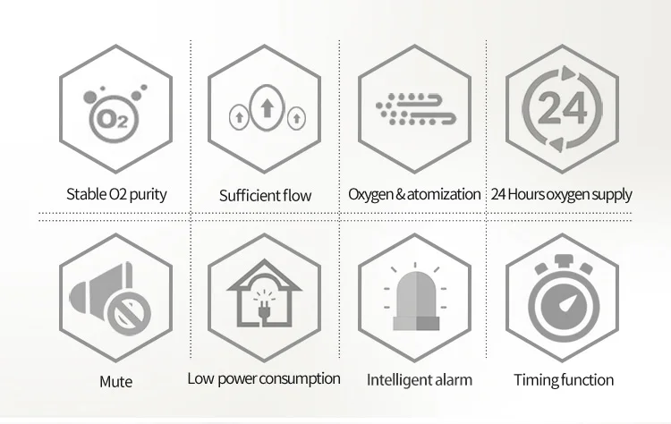 Пневмония, травмы легких, бронхит, астма и т. д. медицинский кислородный концентратор предназначен для обеспечения стабильного кислорода при 93%±3% для 24/7/365 непрерывно.