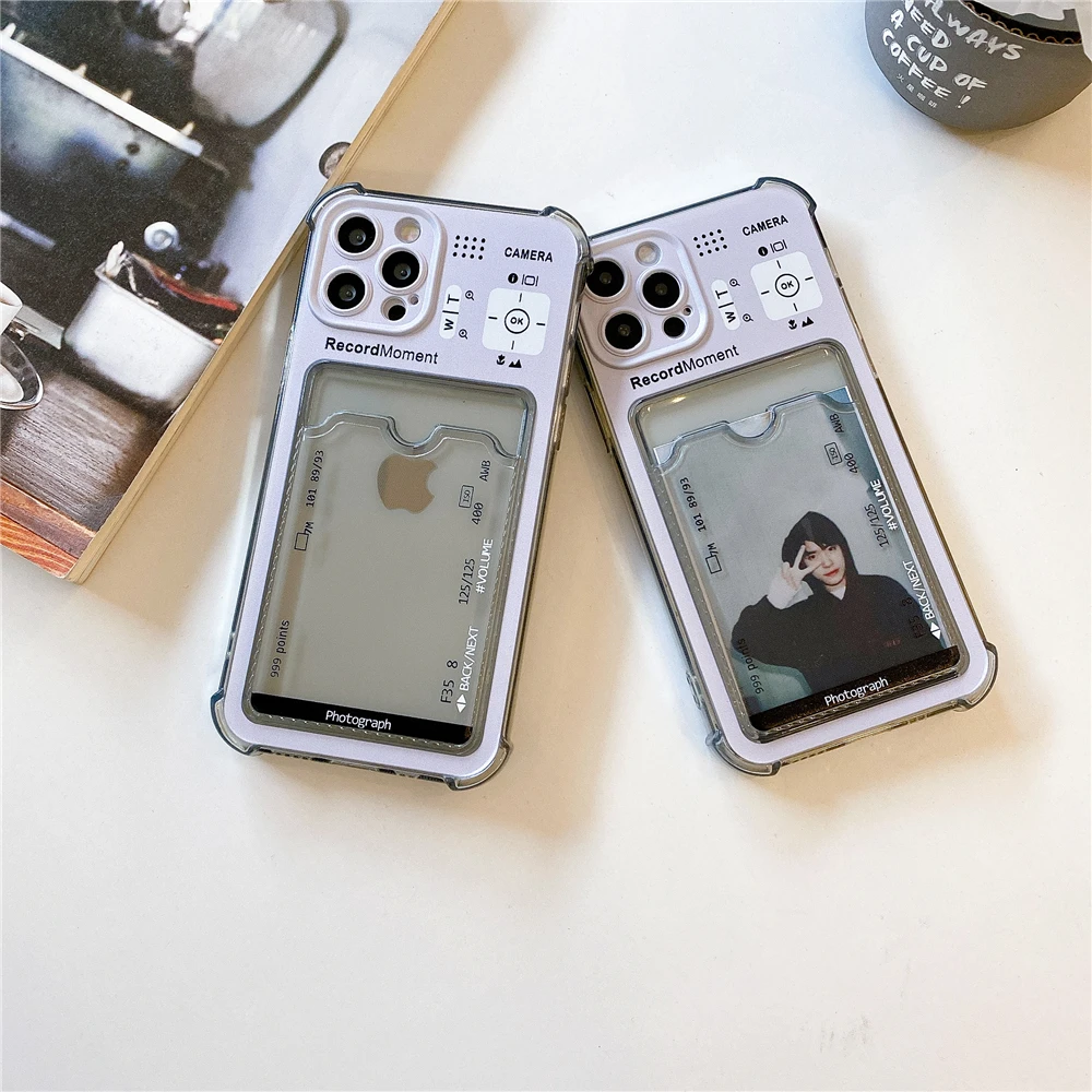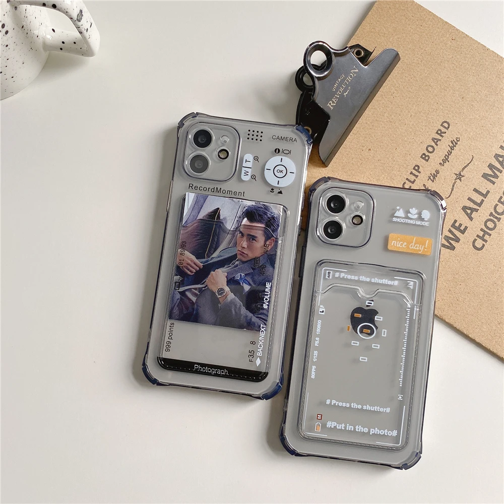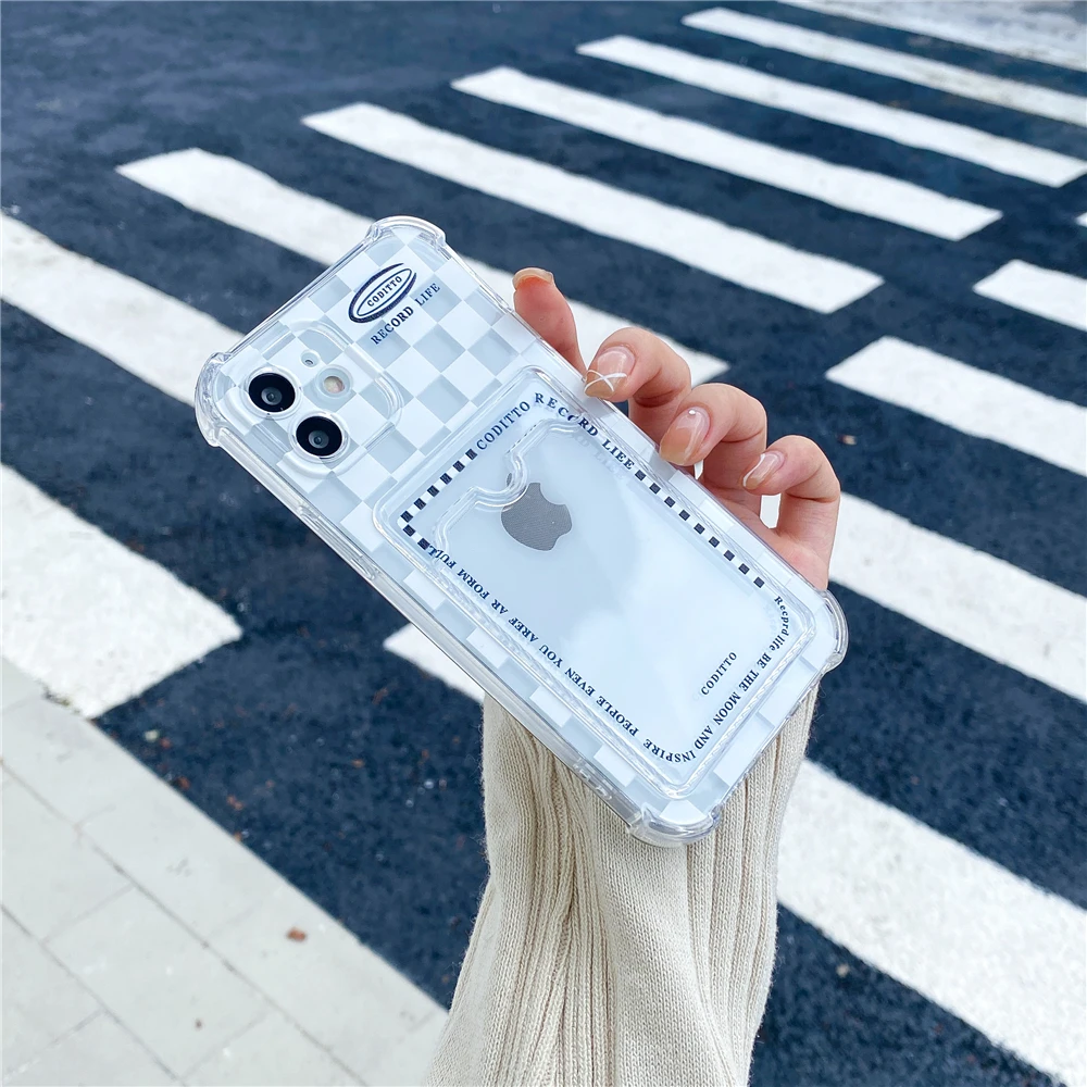 Корейский Стильный Прозрачный чехол для iPhone 11 12 13 Mini Pro XS Max X XR 7 8 Plus SE 2020 противоударный мягкий чехол-кошелек