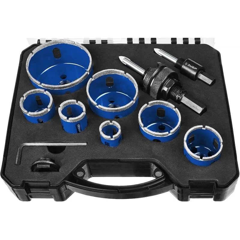 Алмазные коронки ЗУБР отличаются повышенной прочностью и долгим сроком службы. -Комплектация: 7 шт.: Ø 20, 25, 32, 35, 40, 50, 68 -Метод алмазного нанесения: гальваническое покрытие -Размер алмазного зерна 60-100: Р 60-100