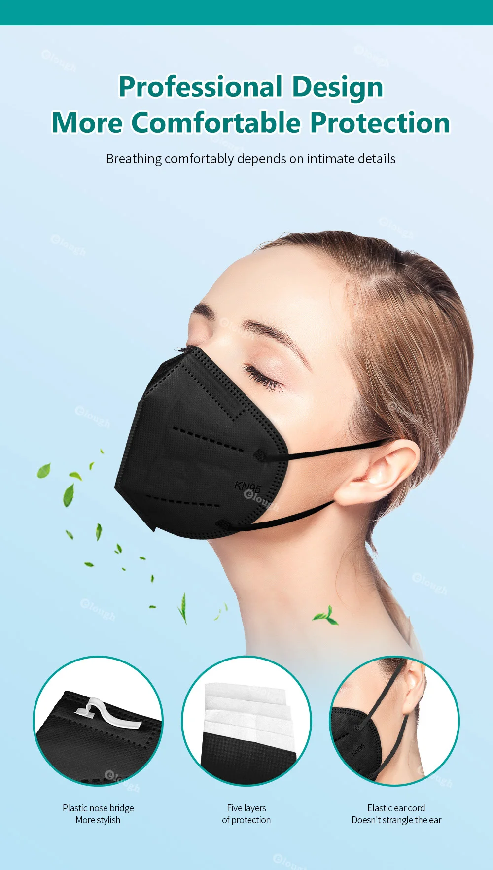 <Удобно носить: эластичные ушные петли без давления на уши.