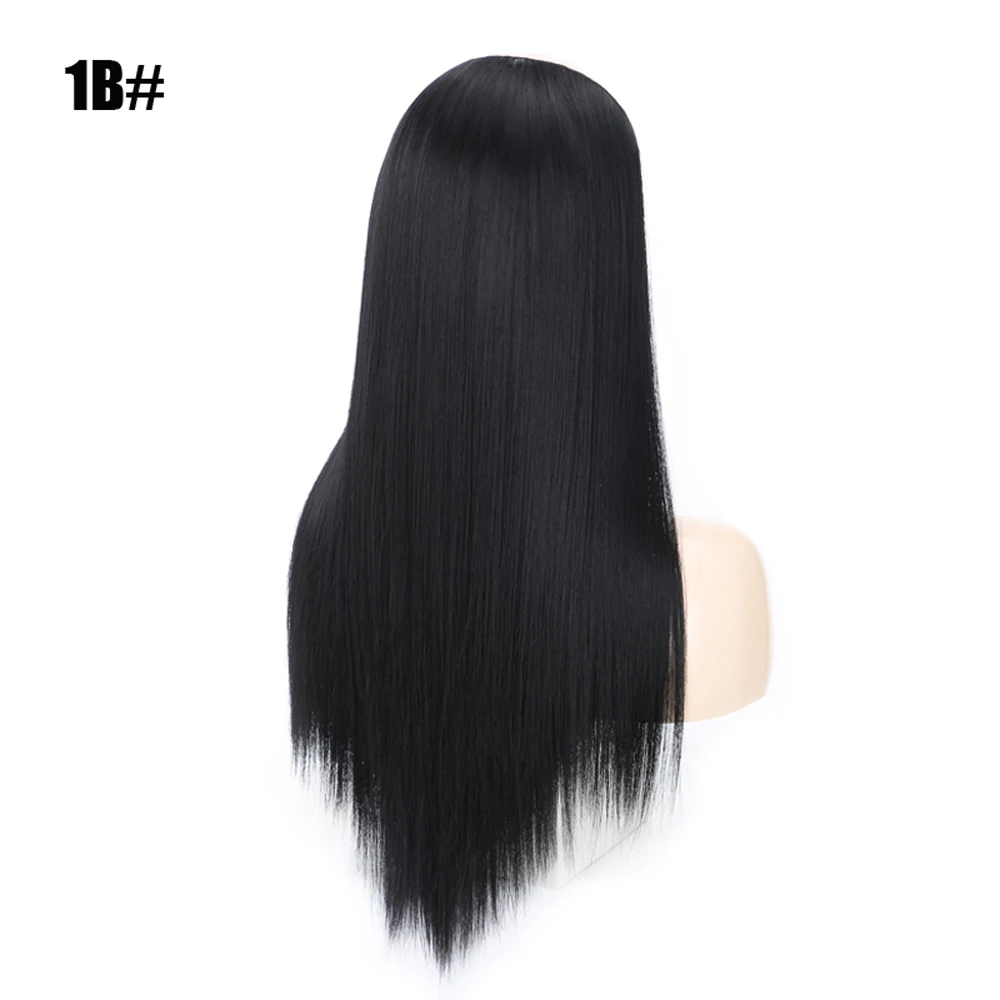 Синтетические длинные прямые u-образные парики для черных женщин, 24 дюйма, высокая температура, искусственные волосы, натуральные, черные, коричневые парики