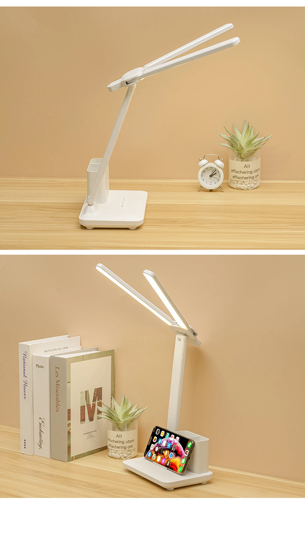 Двухламповый светодиодный настольный светильник высокой яркости с сенсорным затемнением, Складная Настольная лампа, рабочий кабинет, защита глаз, Ночной светильник, Настольный светильник s