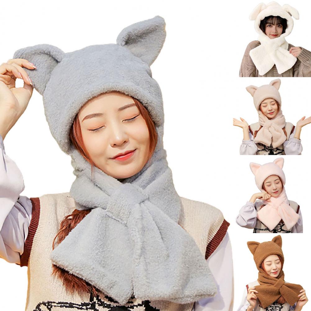 Функциональный плюшевый шарф минималистичный разнообразный стиль котенок уши плюшевая шапка шарф плюшевая шапка