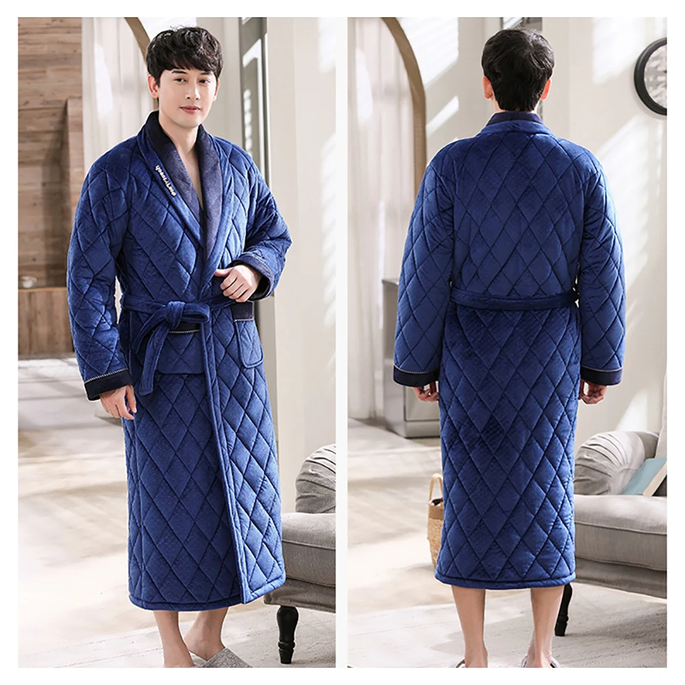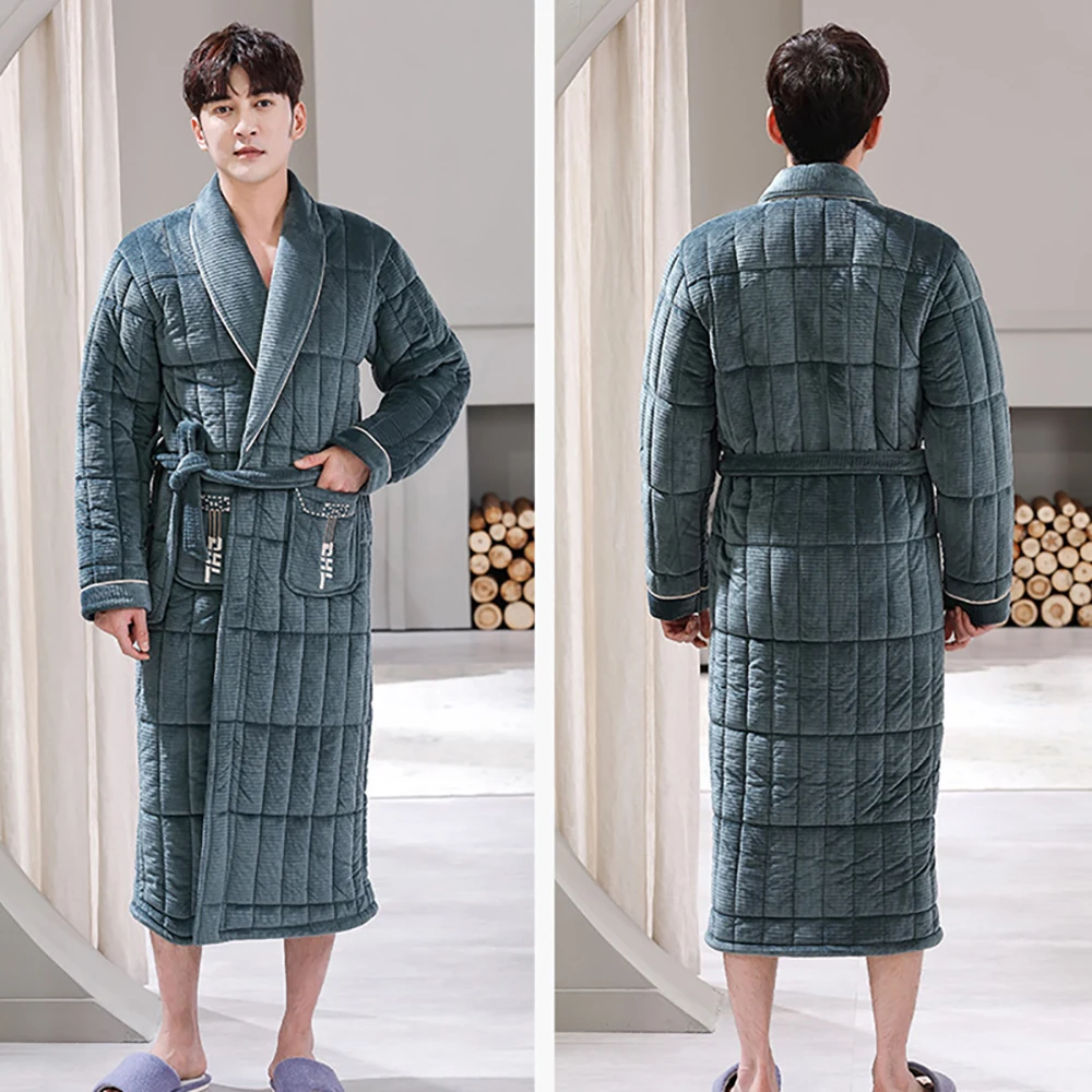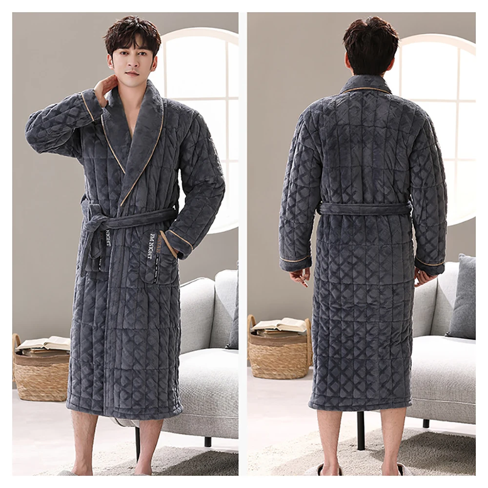 Зимние Для мужчин банный халат Плюшевый халат 3-слойный фланель супер толстый теплый халат класса люкс в клетку для детей, длинный халат для мужчин Полотенца