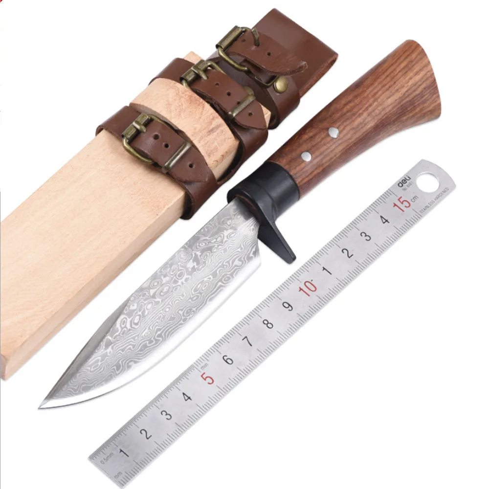 Охотничий нож на открытом воздухе, кухонный нож из углеродистой стали с деревянной ручкой, тактические ножи для выживания, походный инструмент для повседневного использования с футляром