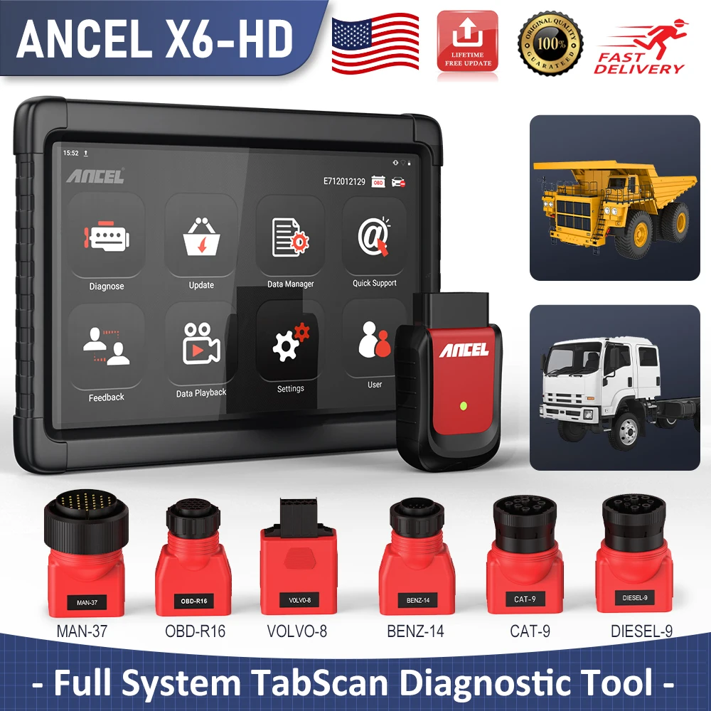 Ancel X6 HD представляет собой на базе Android бренд нового поколения в целом диагностический инструмент для 24V тяжелый грузовик И коммерческих vehilces и механизмов, С 10,1 дюймов наслаждаться безупречным качеством промышленный диагностический планшет, в котором программное обеспечение получить более подробную информацию о turcks автомобилей, автобусов, механизмы от точильный камень и aborad с большим диагностические функции, включая новую разработку диагностический опыт и эффективность затрат, это может быть betther выбор для всех пользователей и мастерской.