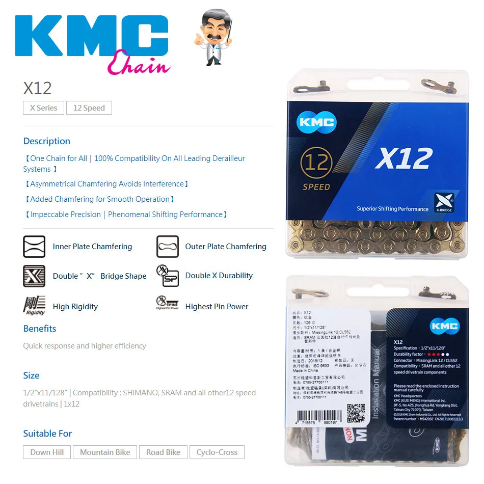 КМК X12 12-Скорость дорога/горный велосипед цепи