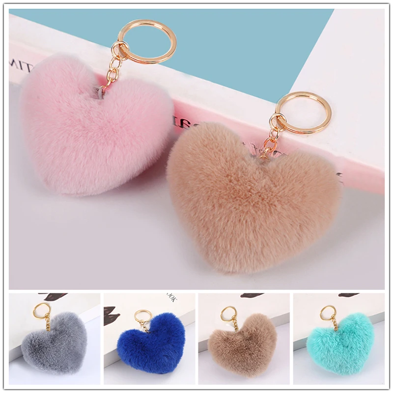 Плюшевые шары брелки флуффли сердце брелок-помпон декоративный ободок кулон для женщин сумка для автомобиля помпон брелок меховой помпон