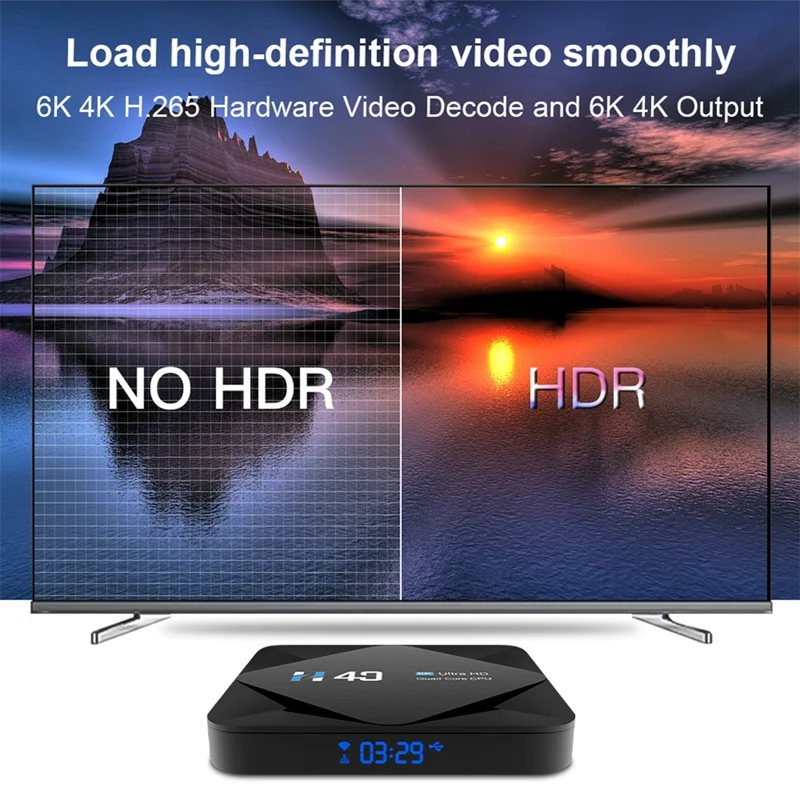 Brand NameFGHGFOriginMainland ChinaCertificationNONEBluetoothYesCPUAllwinner H6 OSLinuxVideo OutputNoneMemory4G DDR3Internal Storage64GB eMMCWirelessYesEthernetNoneMeasurement unit100000015Each pack1Ethernet100MBluetoothYesVideo OutputNoneWirelessYesOSANDROIDMemory4G DDR3Model NumberH40WiFi Transmission Standard802.11n 2.4GHz5 GHzIPTVYesUSB Ports1x USB 2.0