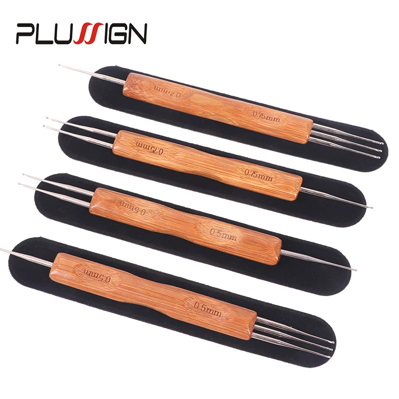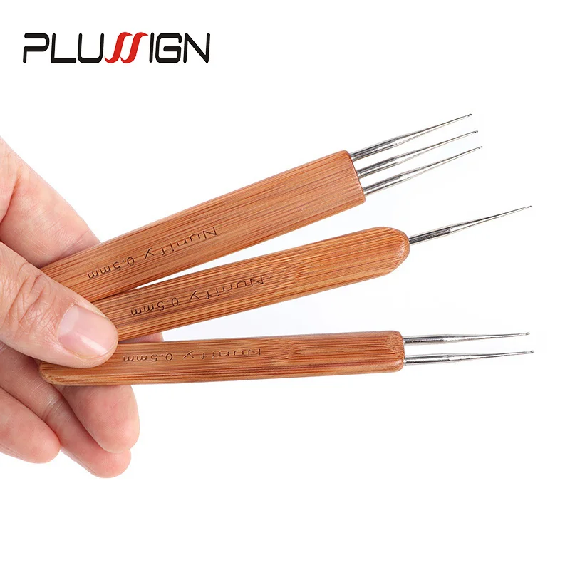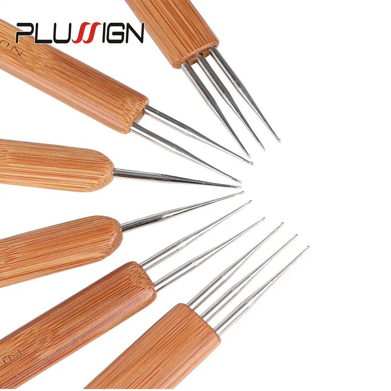 Plussign дредок крючком Крюк Инструмент коса иголка для дредов плетение крючком крючок бамбуковая ручка 0,5 мм 0,75 мм инструменты для волос 1 шт