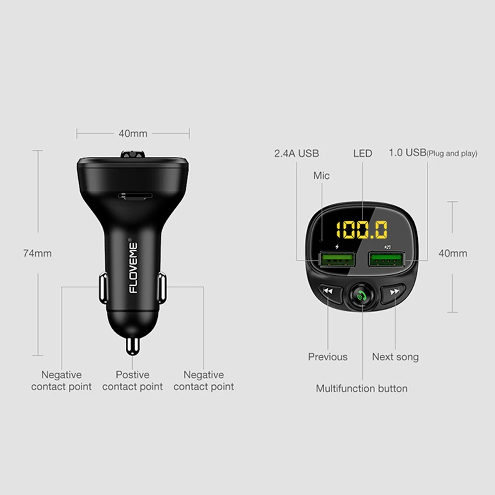 Быстрое Автомобильное зарядное устройство fm-передатчик Bluetooth двойной Usb Авто мобильный телефон быстрое зарядное устройство с светодиодный экран