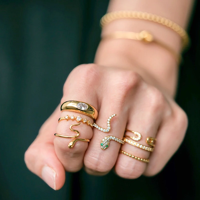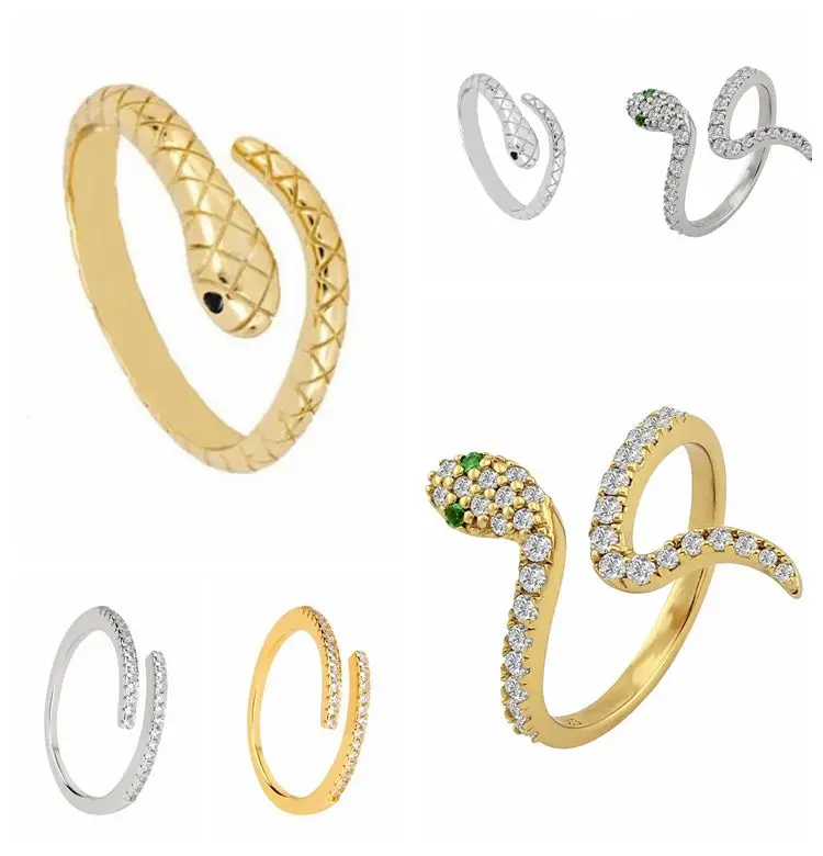 24k Позолоченное серебряное кольцо с изменяемым размером змеи регулируемое животное женское Золото Серебро Цвет роскошный рок панк тонкий круг круглые ювелирные изделия