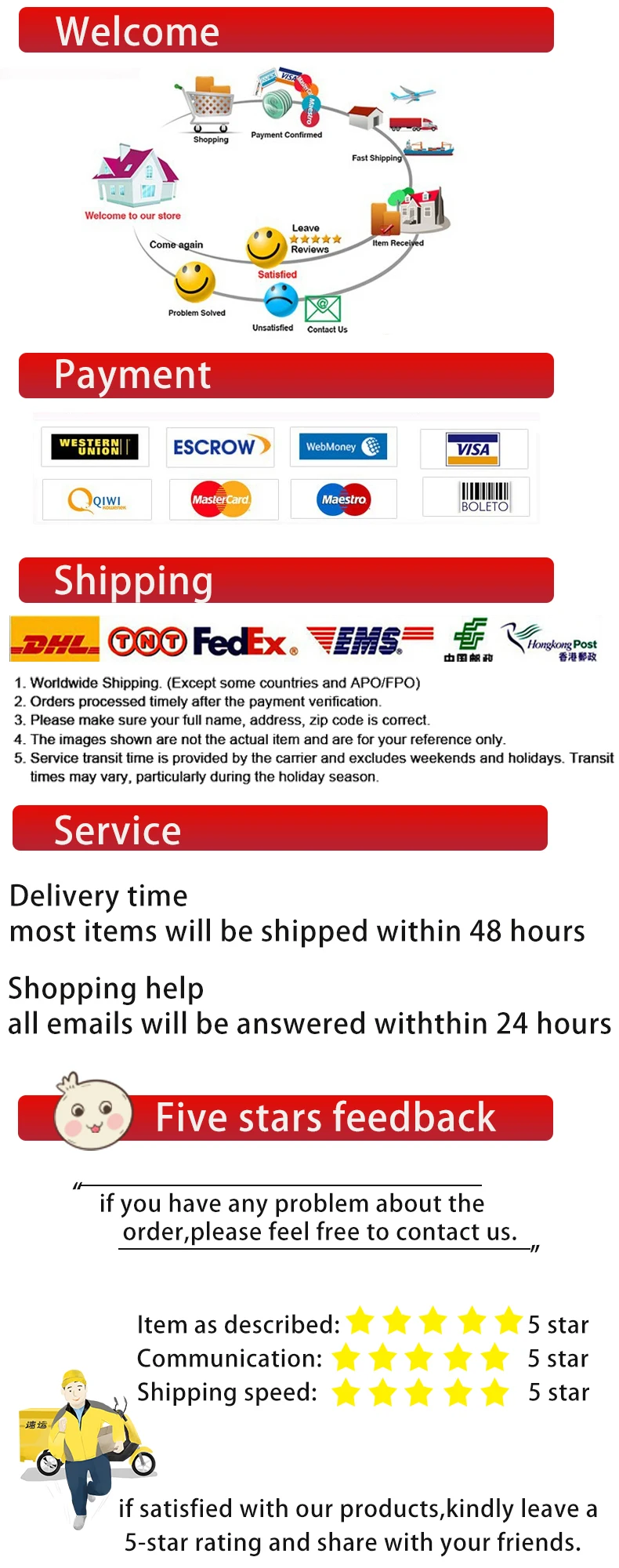Международная доставка требует более сложных процедур доставки (таких как таможня обеих стран, транзитные станции и т. Д.), также будет влиять на многие факторы, такие как праздники, погодные условия и т. Д., таким образом, возможно, потребуется больше времени для доставки ваших товаров в конечный пункт назначения.