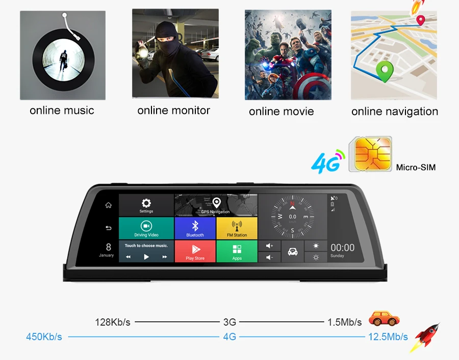 Благодаря sim-карте 4G и встроенному Wi-Fi, независимо от того, где вы едете, вы будете наслаждаться удовольствием от интернет-серфинга, что делает его возможным для онлайн-навигации/музыки/кино и т. Д.