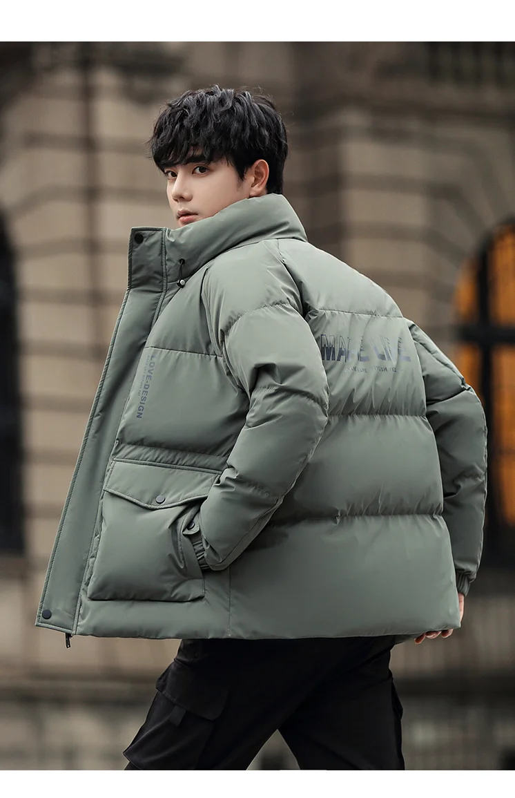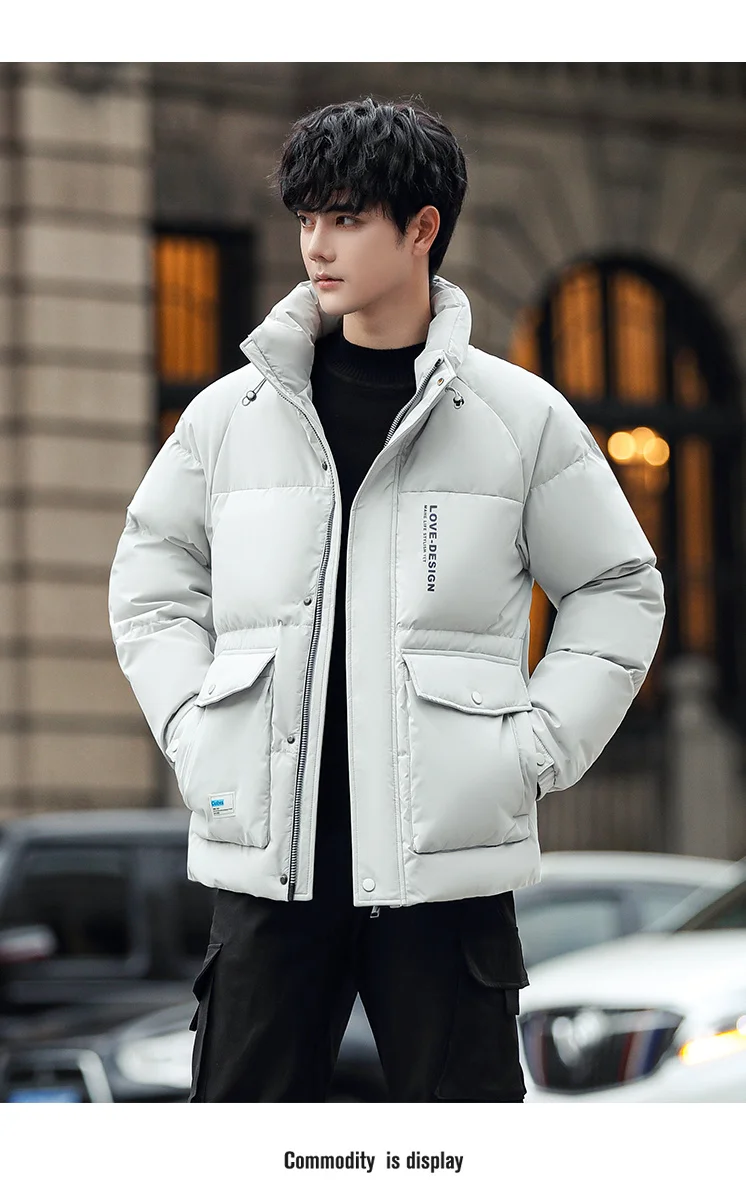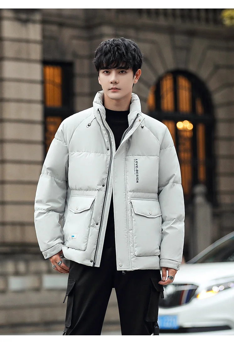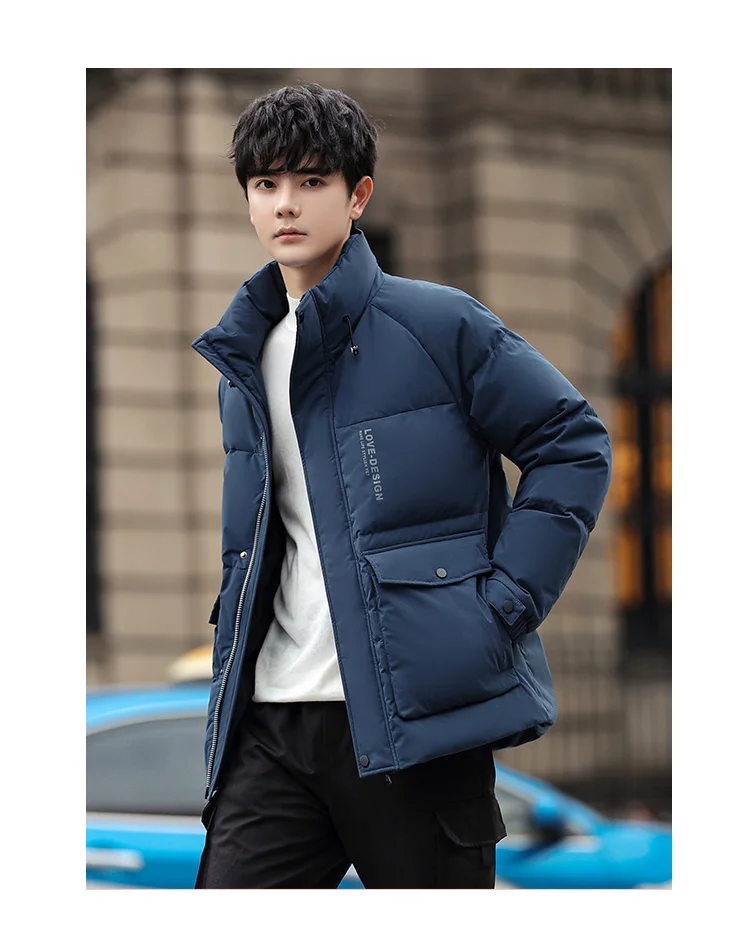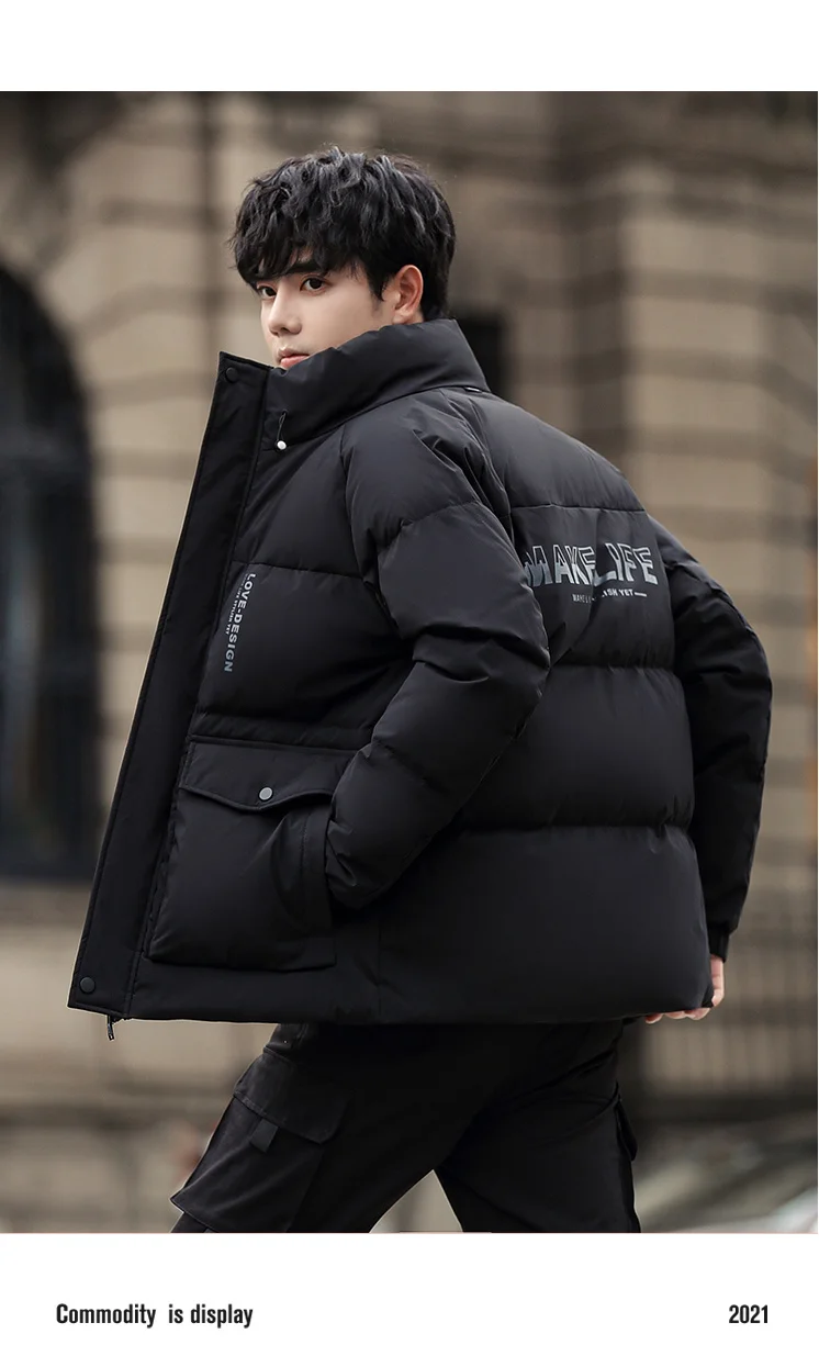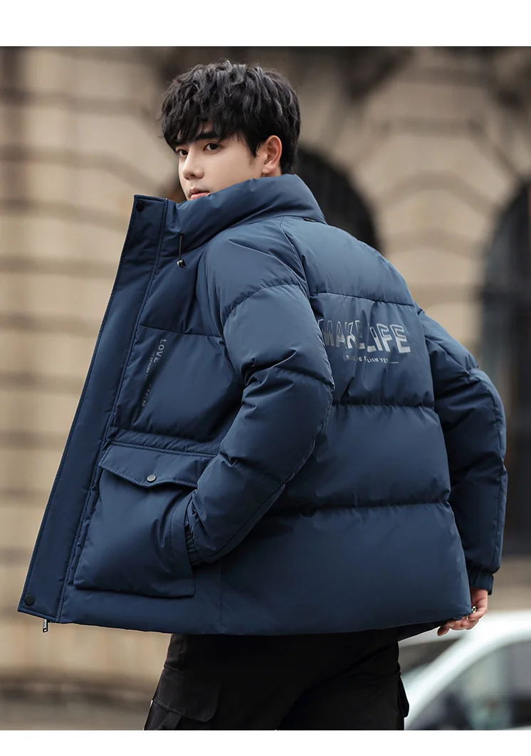 Мужская теплая куртка-пуховик с воротником-стойкой и капюшоном - купить по