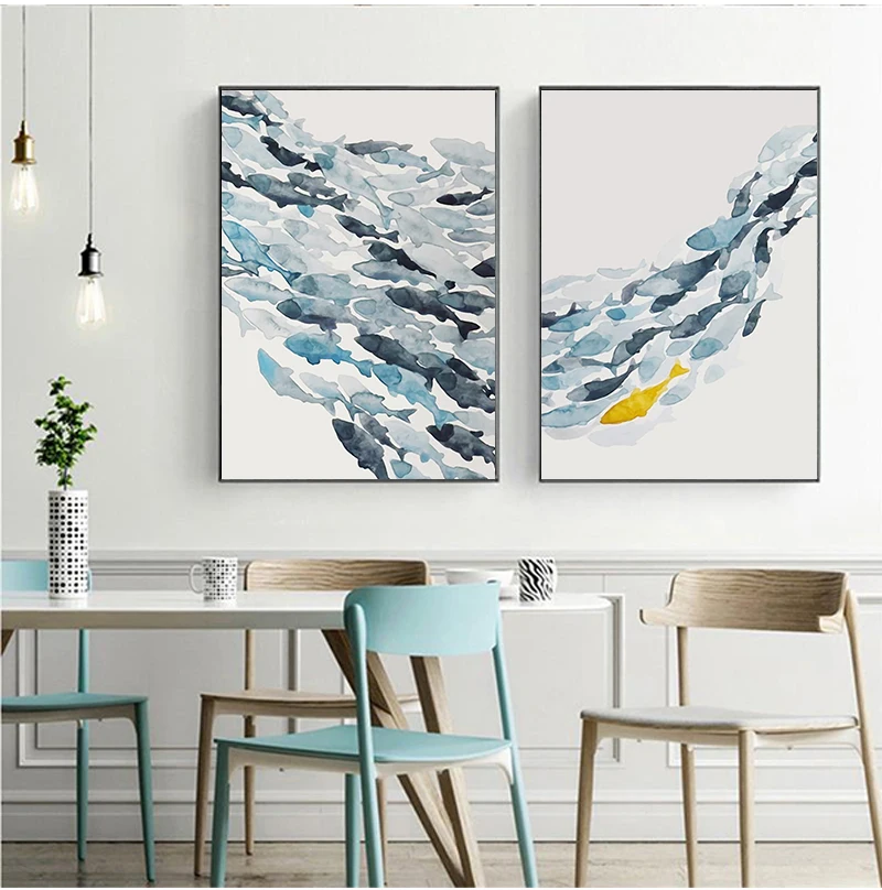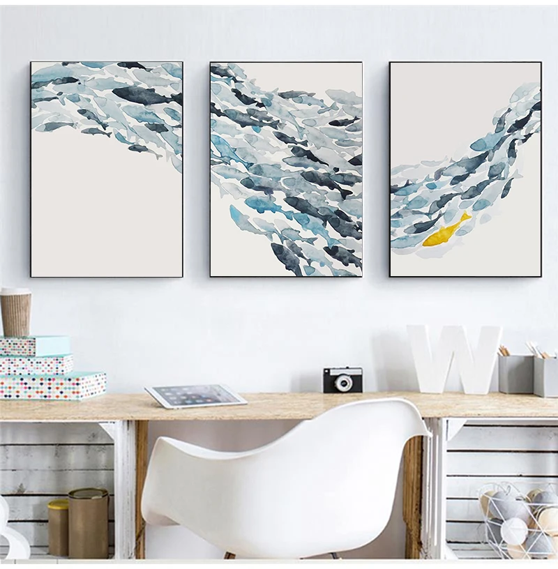Абстрактная Картина на холсте с изображением группы рыб декоративная картина в