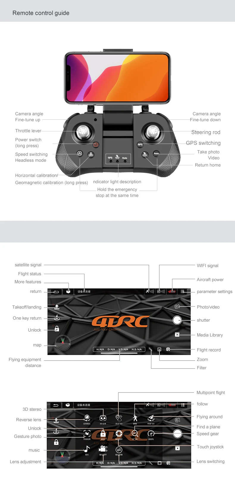 Благодаря своей hd-камере 4K пользователи могут снимать изображения и видео без размытия с воздушной дистанции 2000 метров. Углы камеры также могут управляться приложением/передатчиком, чтобы шаг между-90 ⁰ и 0 ⁰. ·