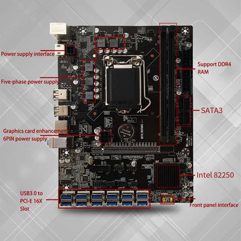 B250C BTC Miner материнская плата + 009S Plus Riser Card улучшенная версия 12XPCIE до USB3.0 слот GPU LGA1151 Mining материнская плата