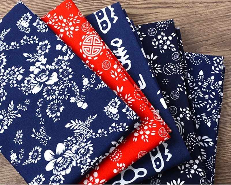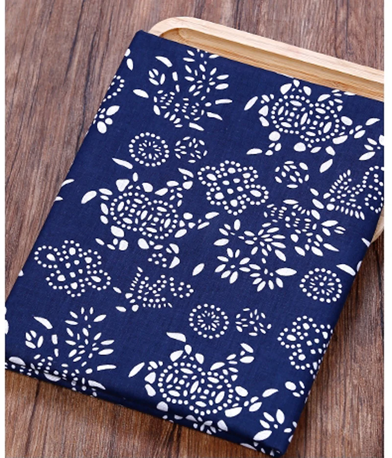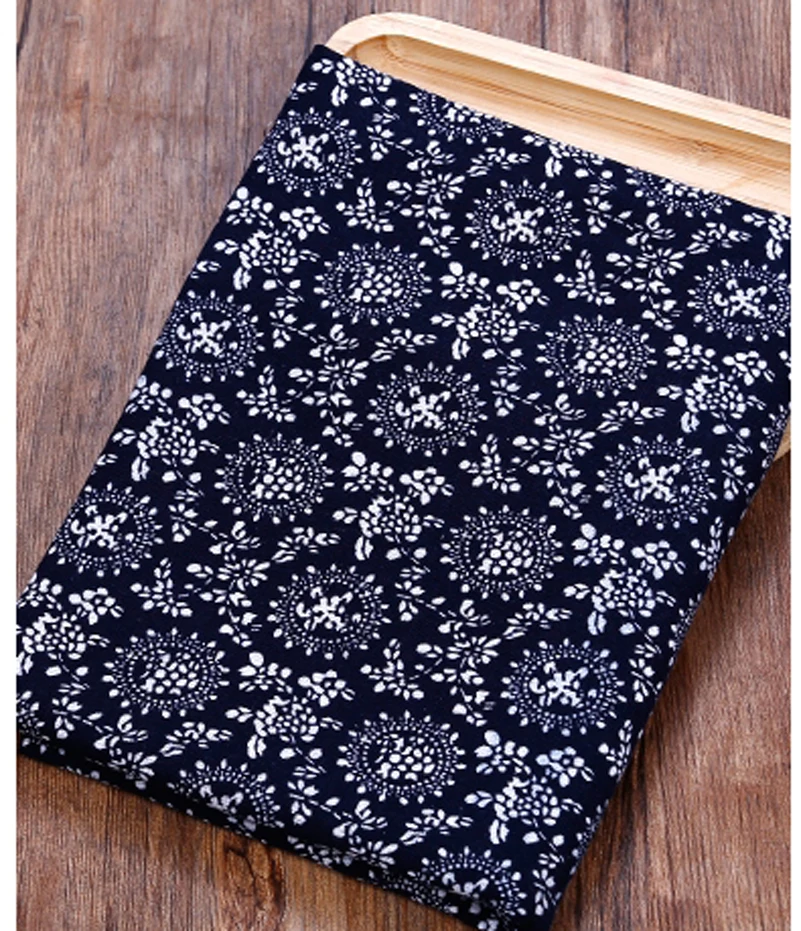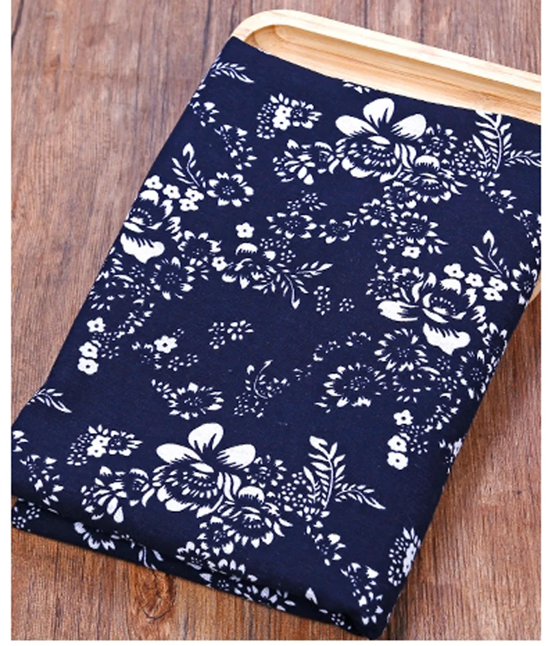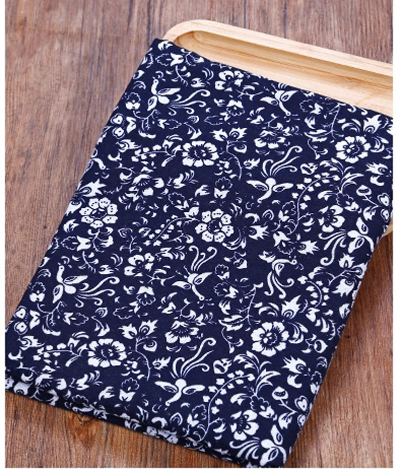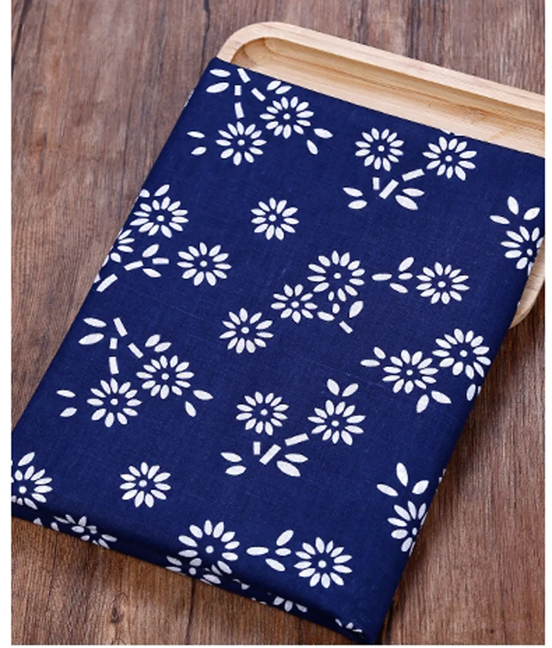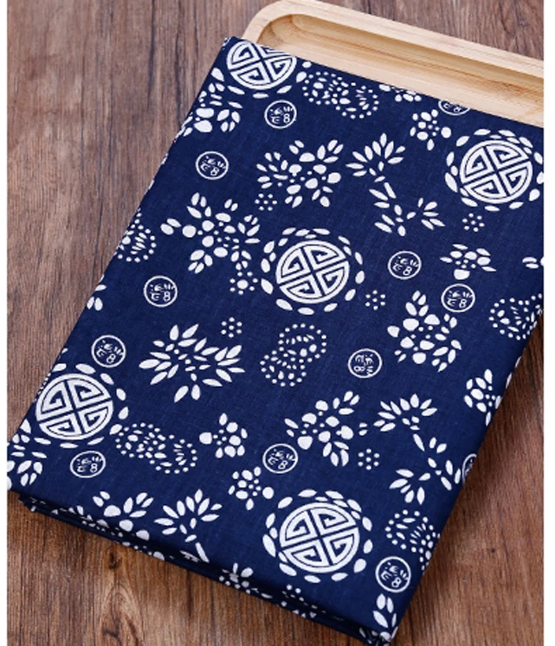 Синяя ткань из чистого хлопка в этническом стиле, ретро ткань, цветочный узор в сетку, узор в полоску, сделай сам, ручная работа, на половину метра