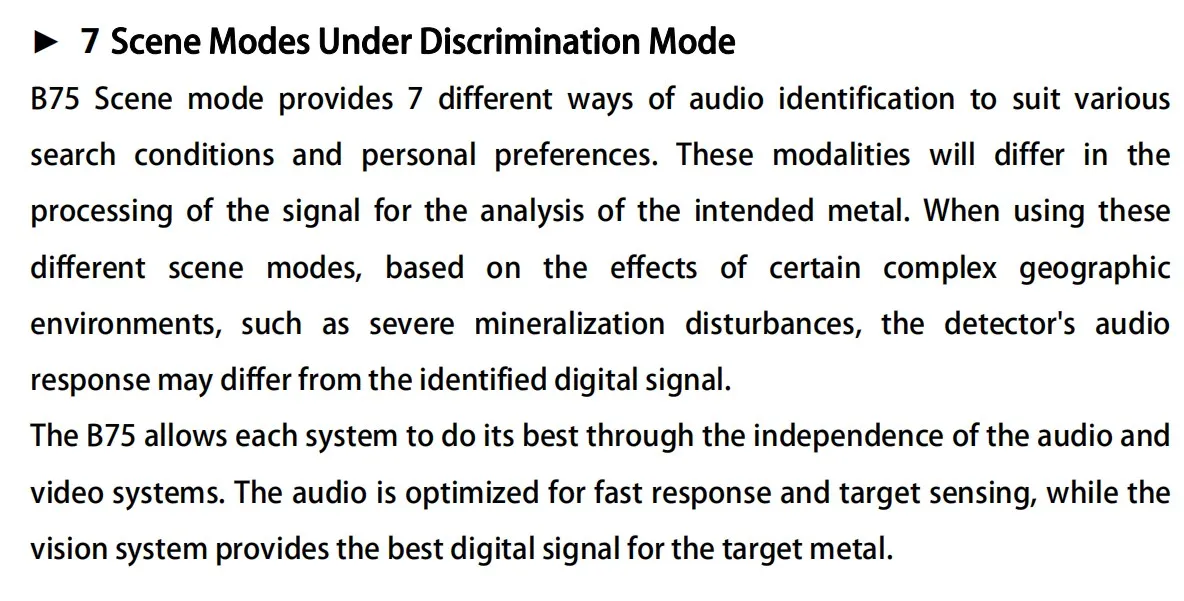 1. Чувствительность:Чувствительность контролирует усиление сигнала и может регулироваться между 1 и 99. Разумная чувствительность настройки, чтобы получить лучший опыт обнаружения. B75 делится на чувствительность с низким коэффициентом усиления (1-29) и чувствительность с высоким коэффициентом усиления (30-99).