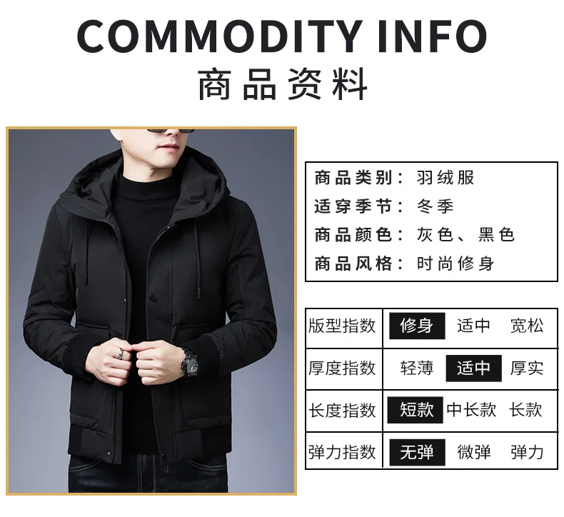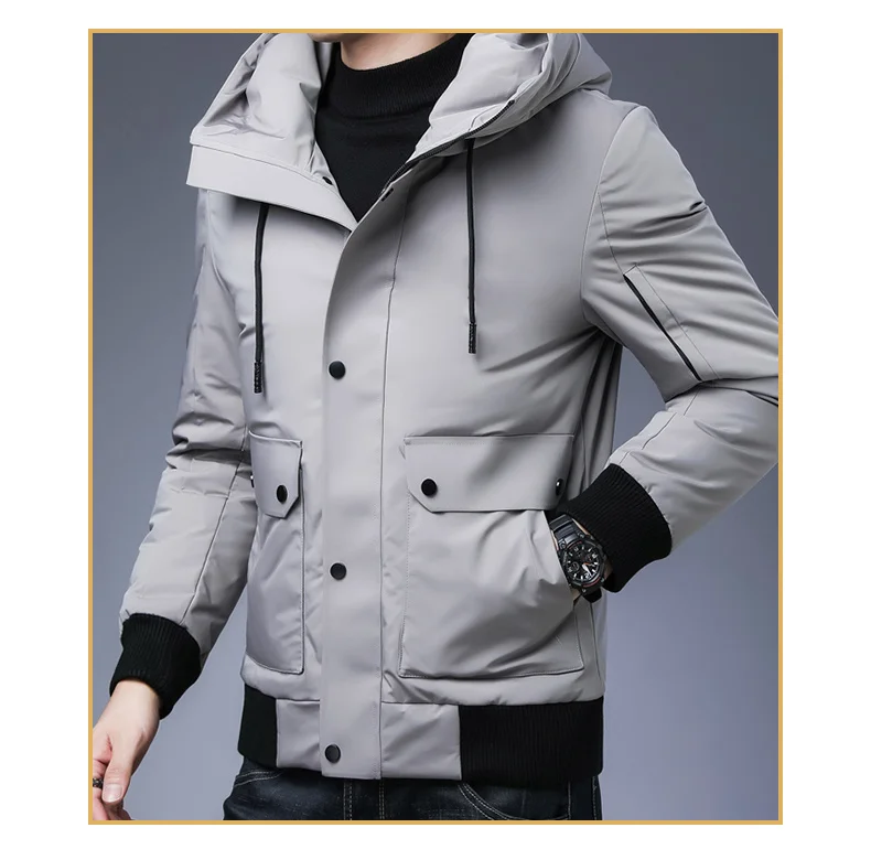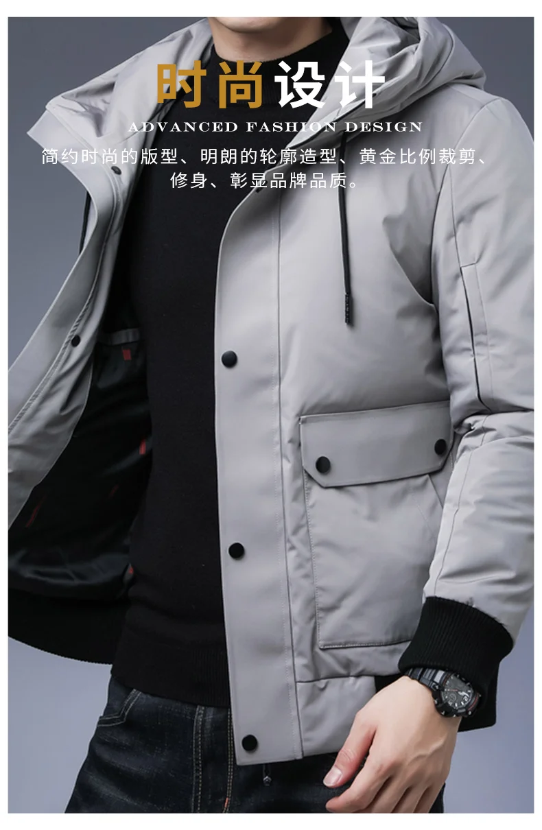 Мужской пуховик с воротником-стойкой однотонный на молнии теплая верхняя одежда