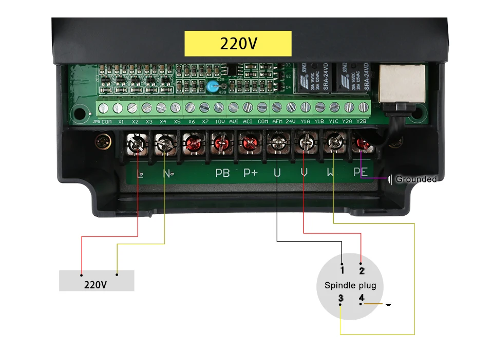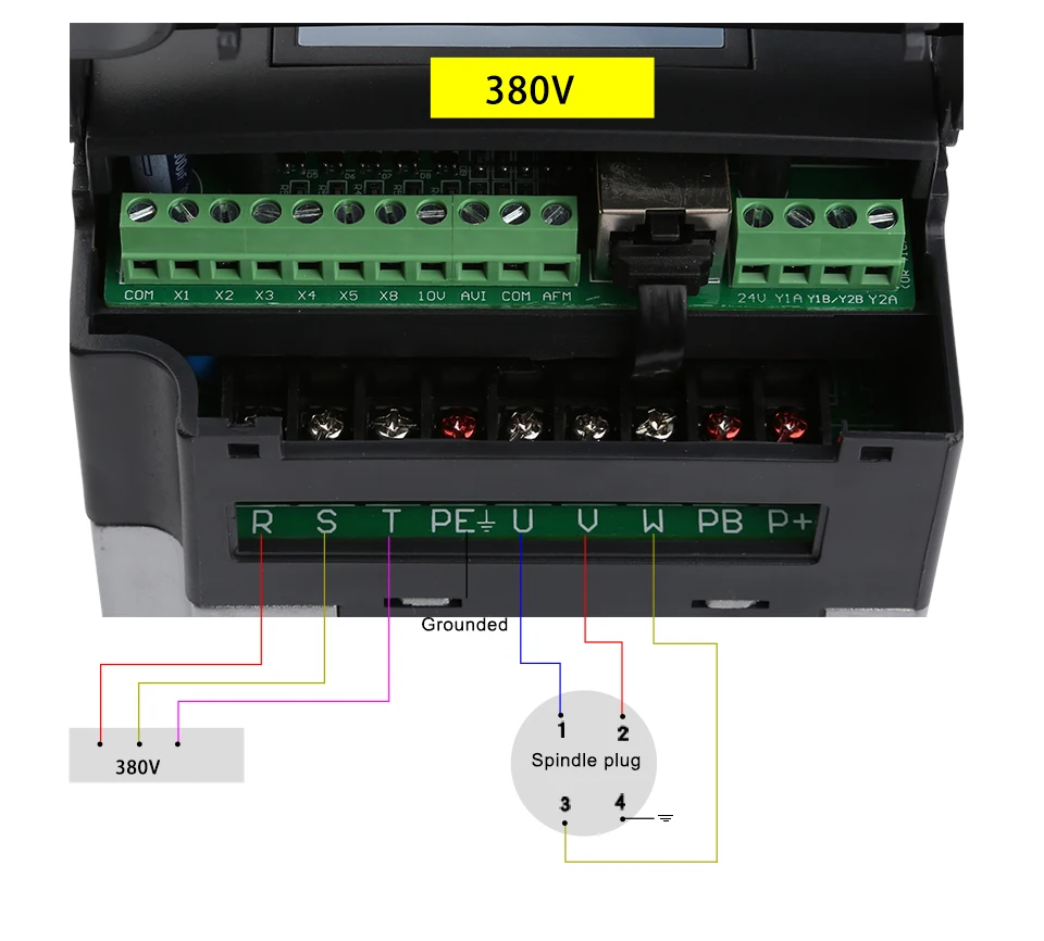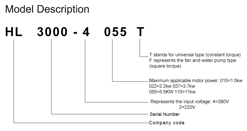 Стандартный схема подключения однофазных 2.2kw-3.7kw, трехфазный 1,5-200kw инвертор (пластиковый чехол)