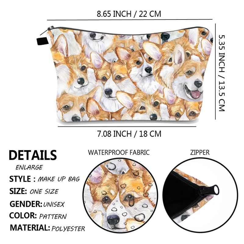Новые женские косметички Corgi Dog Printi, милые повседневные дорожные портативные сумки для хранения косметики, сумки для туалетных принадлежностей с индивидуальным рисунком