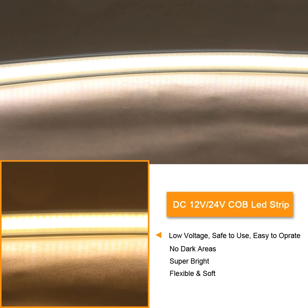 Waterproof COB LED Strip Light Bar 320 384 528 LEDs DC12V 24V High Density COB Flexible LED Lights Ra90 9 colors LED Tape 5m/lot