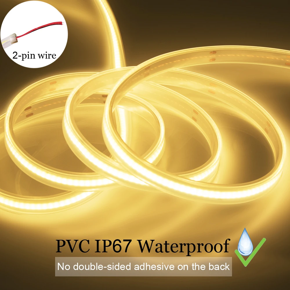 DC12V/24V COB led strip can not directly connect to AC 110V or 220V, must add DC12V or 24V power transformer;
