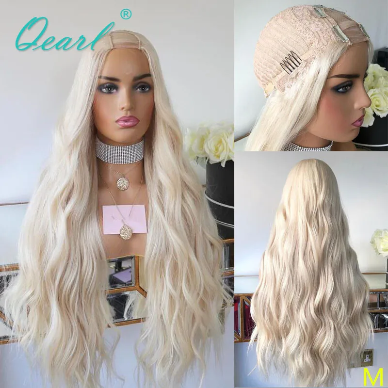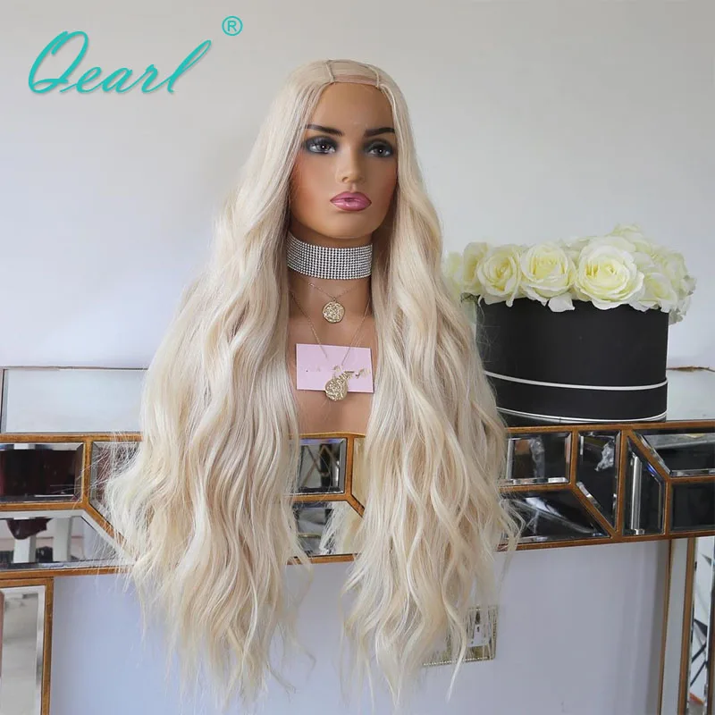 Человеческие волосы, u-образный парик, белый ледяной блонд 2x4, u-образные открытые женские парики, прозрачные натуральные волнистые бразильские волосы Remy 180% Qearl