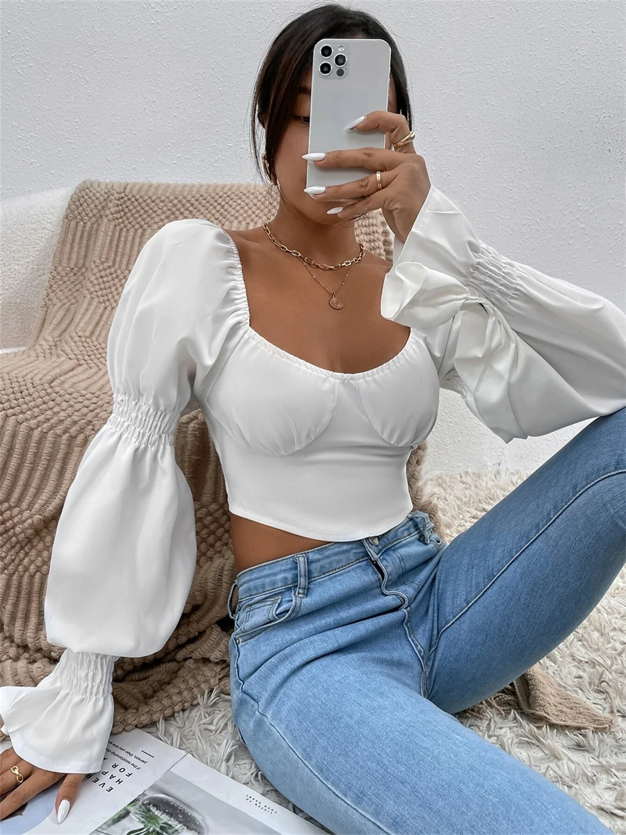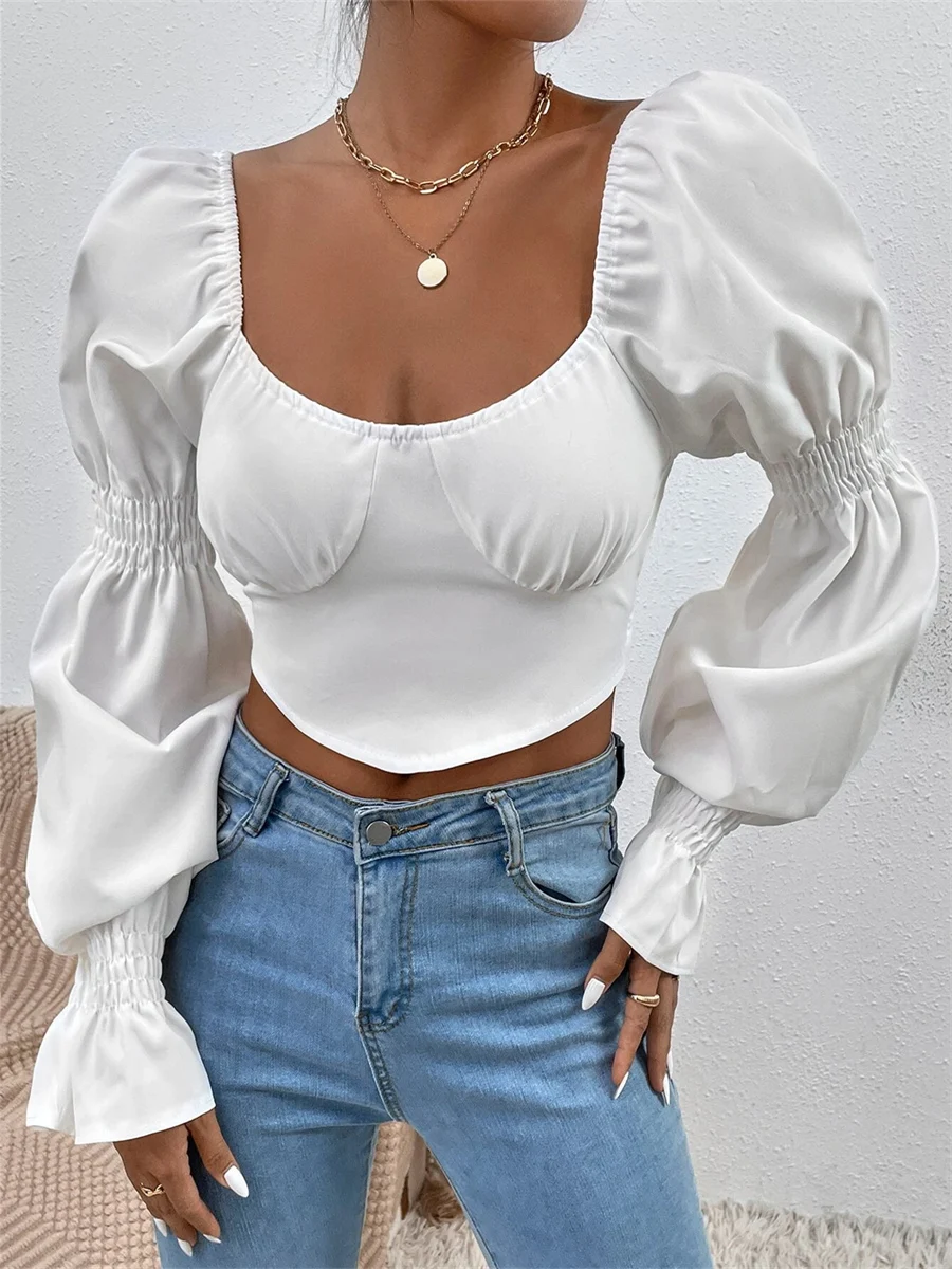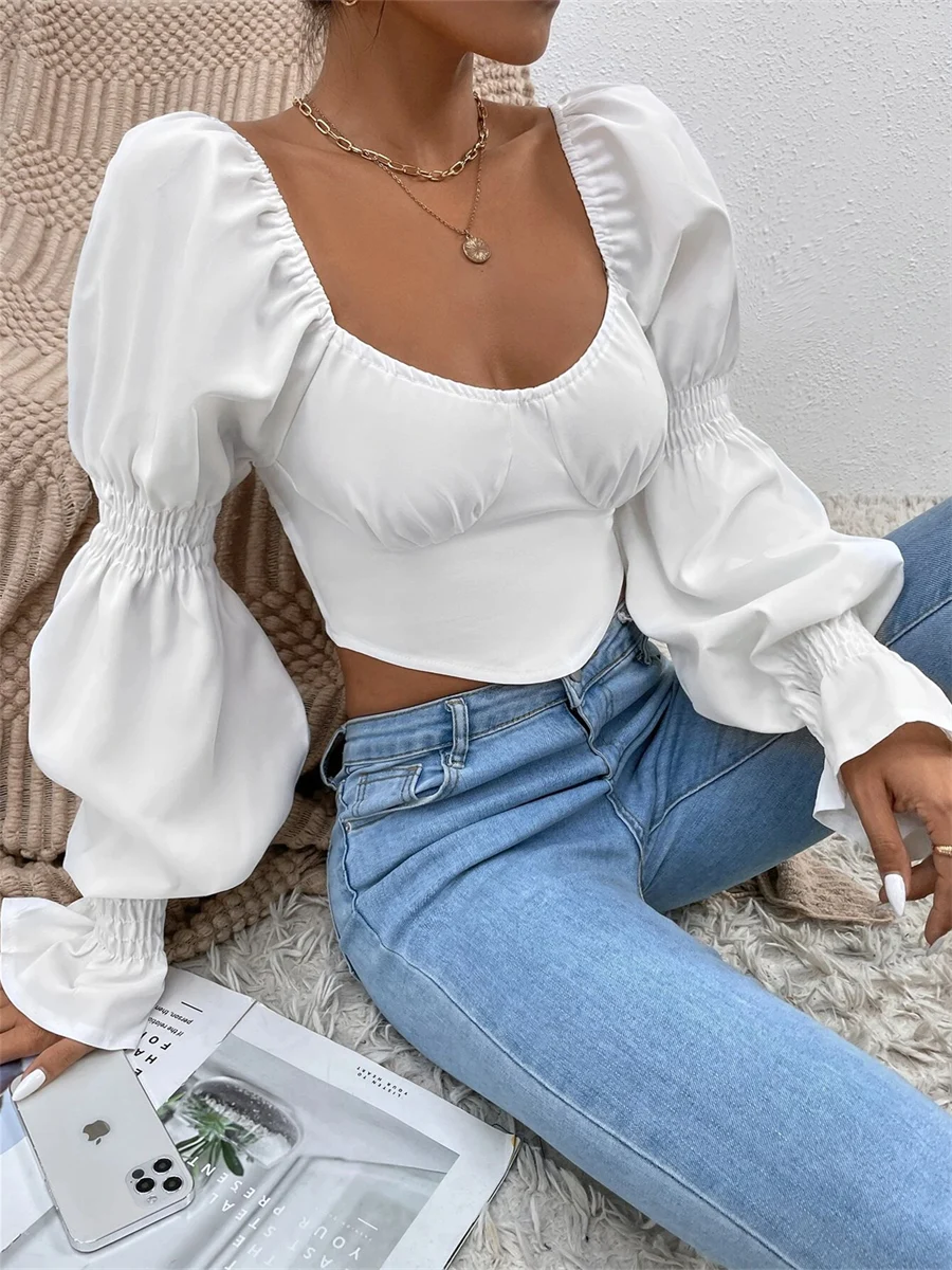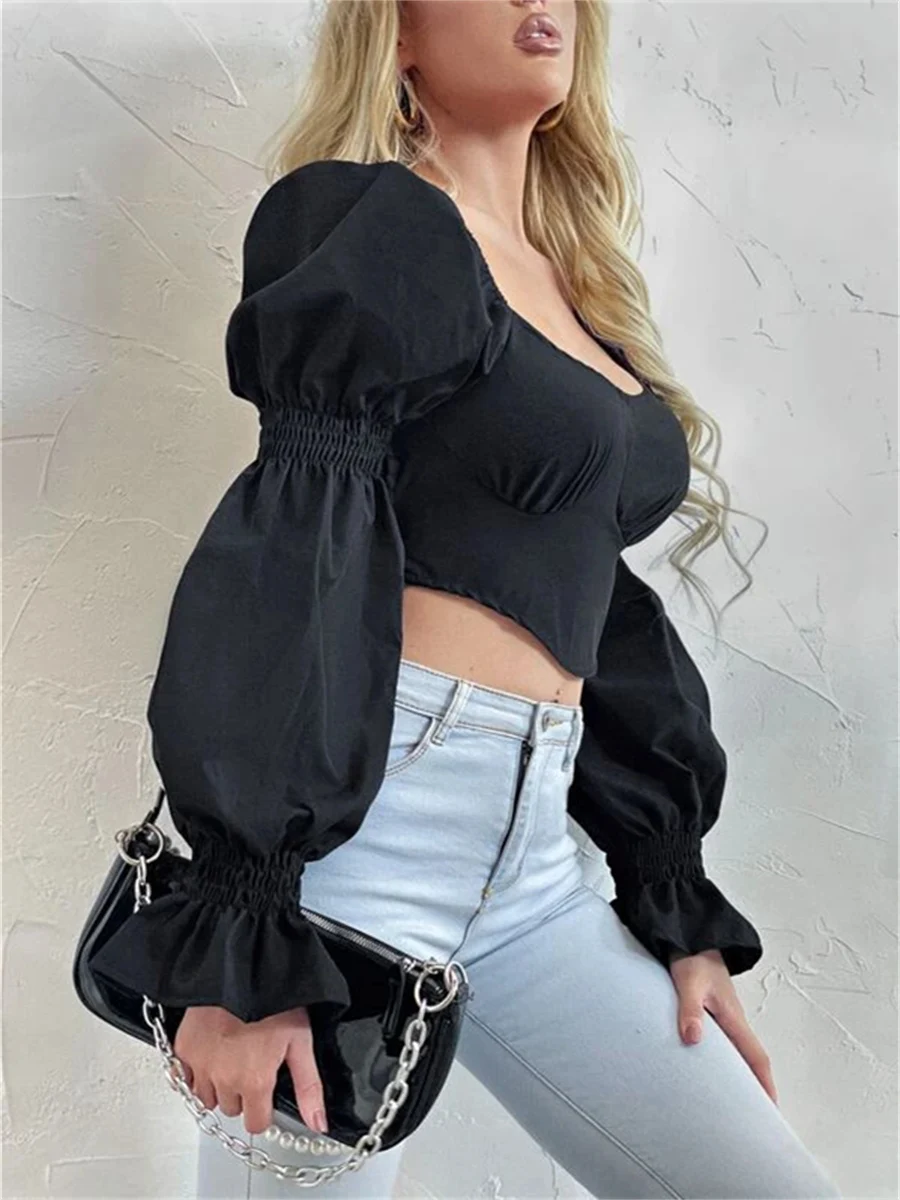 Женская уличная футболка с вырезом лодочкой необычная тонкая Осенняя короткая