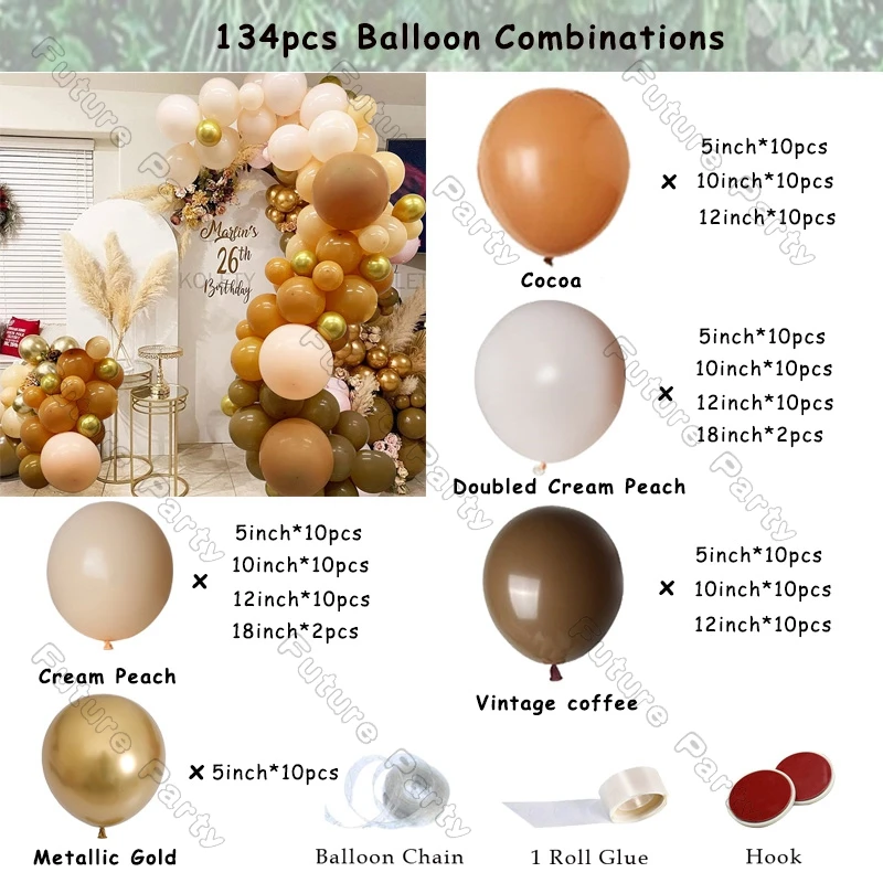 Кофейный шар (5 дюймов * 15 шт., 10 дюймов * 15 шт., 18 дюймов * 1 шт.)