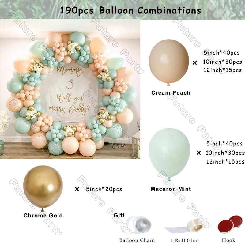 Мята Макарон (5 дюймов * 40 шт., 10 дюймов * 30 шт., 12 дюймов * 15 шт.)