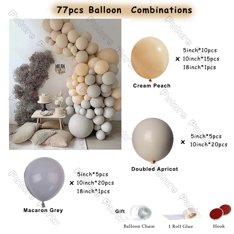 Двойные абрикосовые шары (5 дюймов * 15 шт., 10 дюймов * 15 шт., 12 дюймов * 5 шт., 18 дюймов * 1)