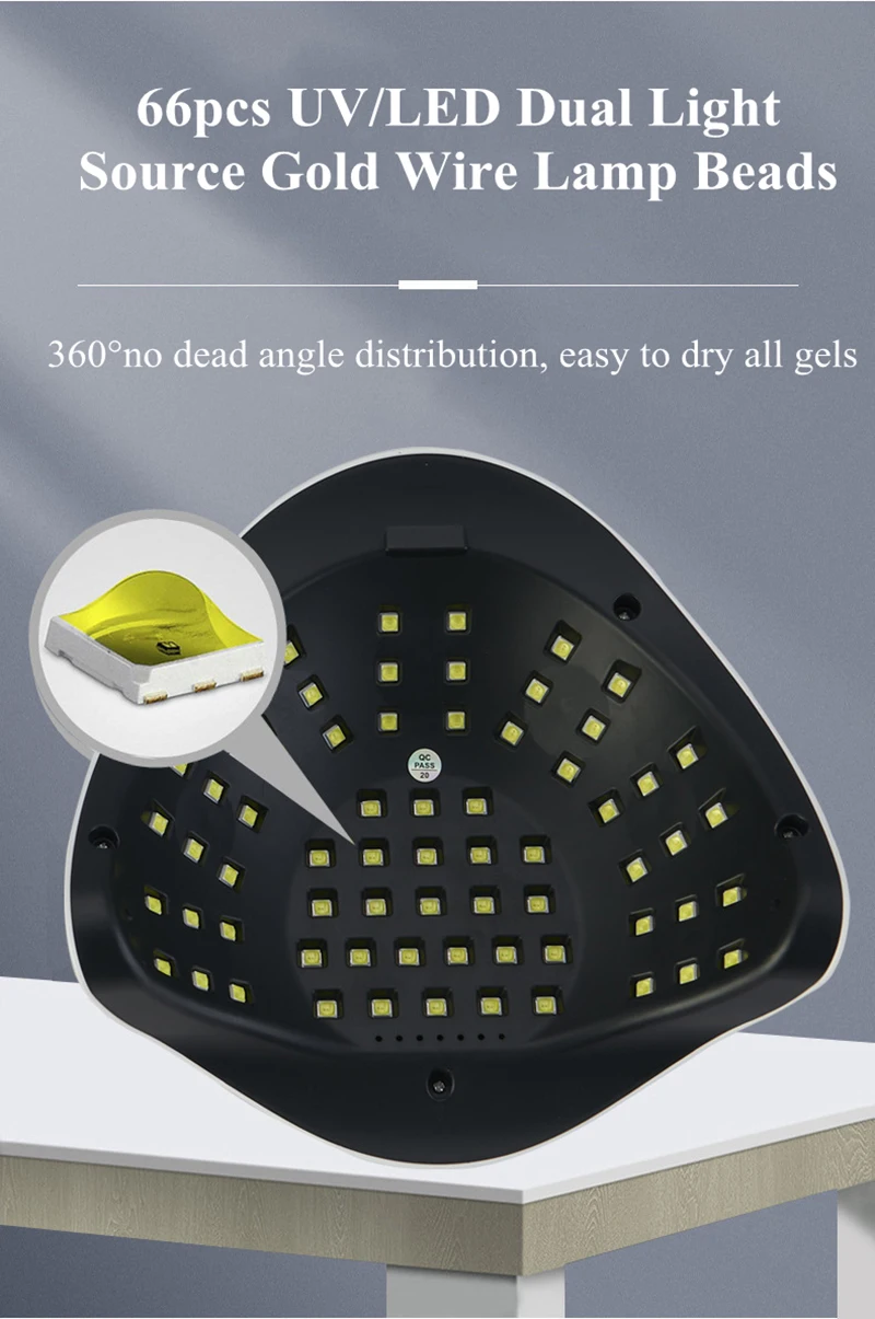 【Двойной светильник-источник и широкая совместимость 】-двойной светильник-источник с длиной волны 365нм + 405нм. Он может высушить гель для ногтей, светодиодные гели, гель для ногтей, гель для скульптуры ногтей, стразы, клей для драгоценных камней, шеллак и другое использование геля, предоставить вам различные виды геля с Вашим желанием.