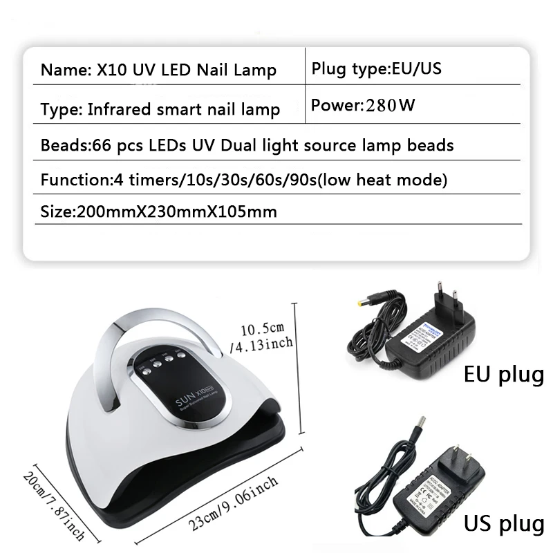 【Высокая мощность и быстрая отверждения Nail】-наша профессиональная машина для отверждения лака для ногтей имеет самую высокую конфигурацию технологии УФ-светильник. 280 Вт Высокая мощность быстрее отверждения гель-лака для ногтей. Уменьшает время высыхания до 80%, безболезненное погружение. 66uv + светодиодный свет равномерно рассеивается сверху и по бокам лампы. Так что ваши ногти будут исправлены. Это первый выбор профессионального маникюрного салона.