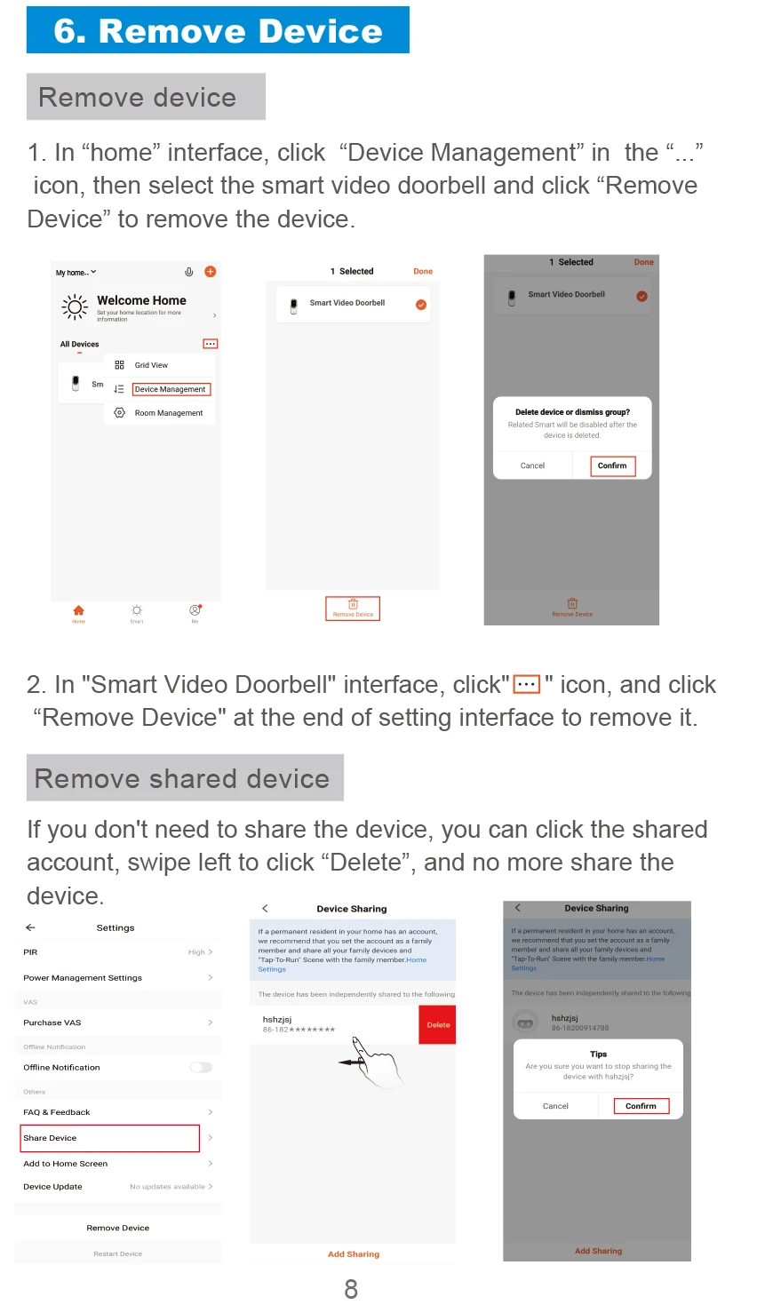О: он должен быть сброшен, когда дверной звонок не может работать нормально или не может быть подключен к телефону. Вы можете использовать отвертку или другой инструмент для нажатия отверстия сброса в течение 10 секунд для сброса.
