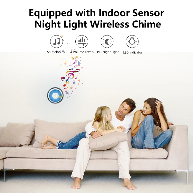 -Дверной звонок с датчиком движения PIR и функцией ночной Светильник