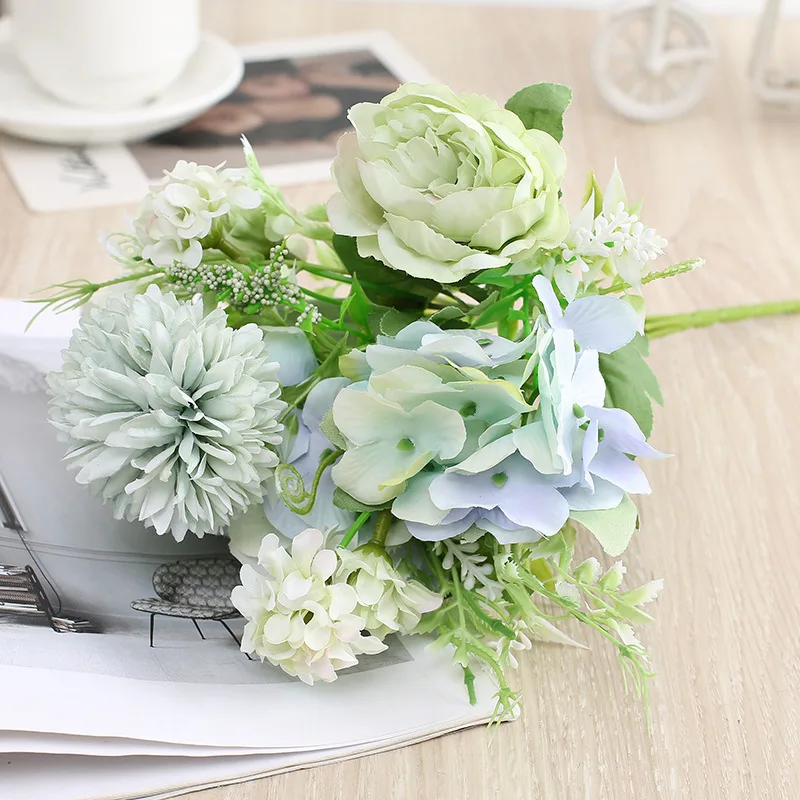 Искусственные пионы многоцветные букет 7 вилок Гортензия Роза календулы шелковые цветы для дома Декор Рождественское украшение Свадьба CK32PB