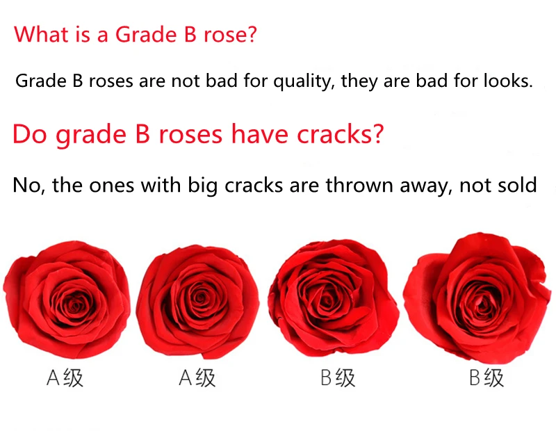 Качество сохраненного цветка класса B определенно не так хорошо, как у сохраненного цветка класса A, будут изъяны, будет разница в цвете.