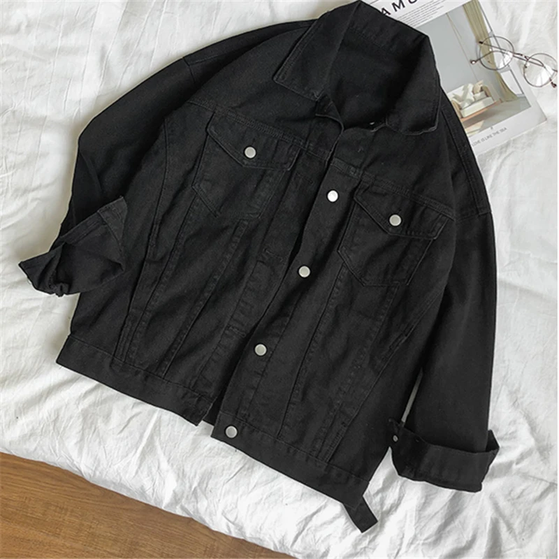 Белая джинсовая куртка, женские куртки осень 2021, Женское пальто, джинсовое пальто, новое, сплошной цвет, модная, универсальная, свободная, с отворотом, женская черная куртка, женское пальто большого размера, женская одежда