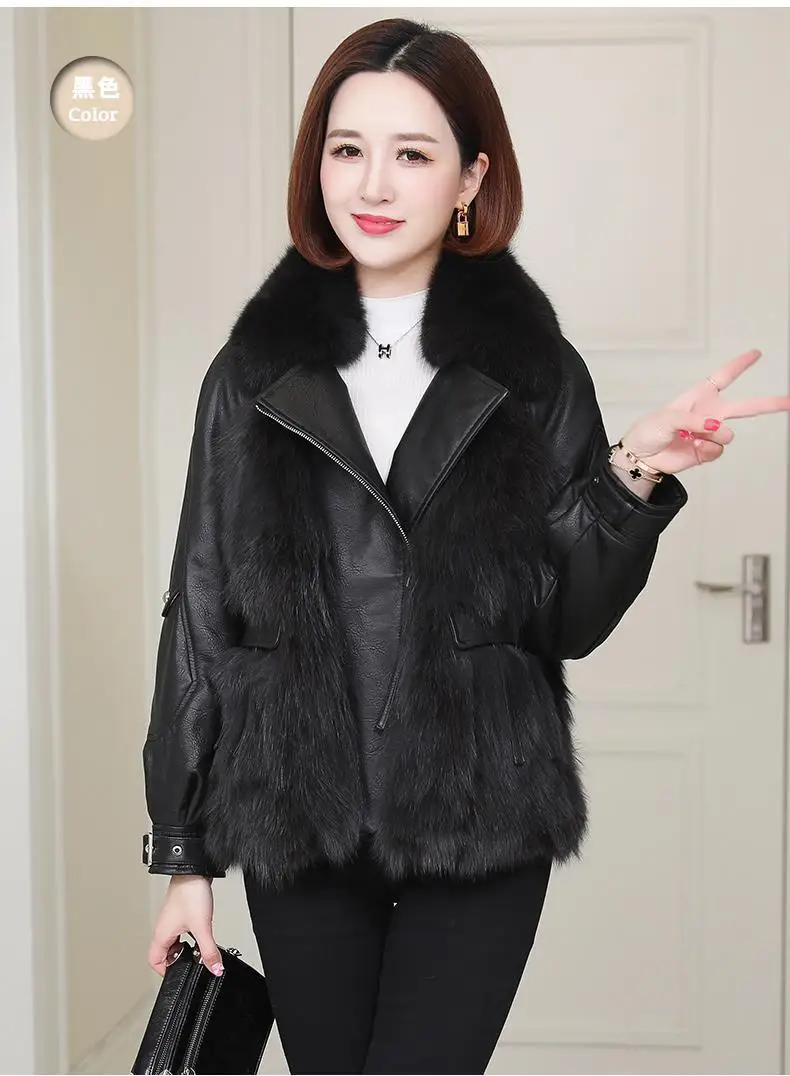 2021 зимнее Новое Стильное пальто с искусственным мехом лисий мех короткое кожаное пальто с имитацией меха имитация овечьей шкуры повседневная куртка