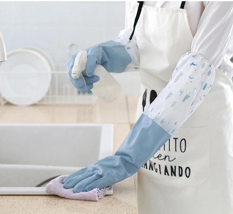 Резиновые перчатки для работы по дому, плюшевые, Утолщенные, моющая одежда, посуда, Теплые Семейные перчатки для уборки зимой, двойные Eleven, рекламные